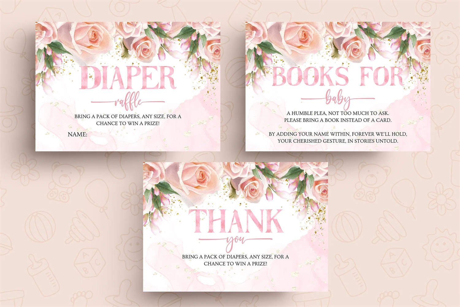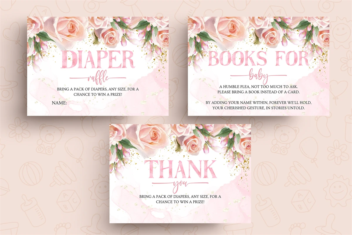 5 x 3.5 Inch Diaper Raffle, Book for Baby and Thank you Card.