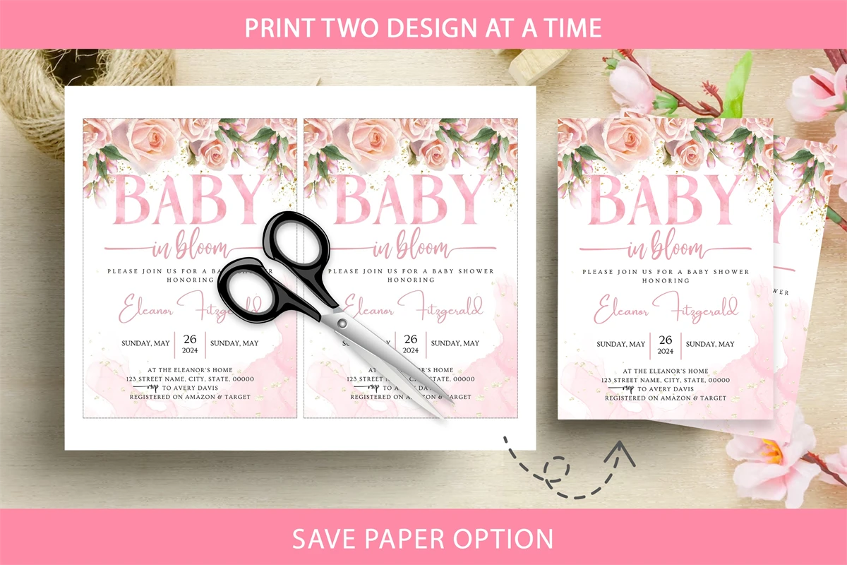 Editable Baby in Bloom Baby Shower Invitation Template set.
