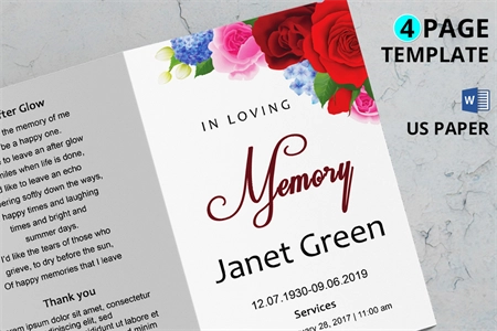 8.5x11 Inches Microsoft Word, Publisher and CANVA Funeral Program Template.