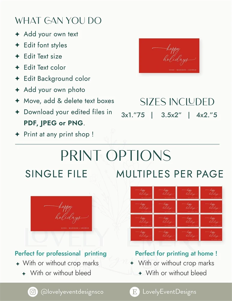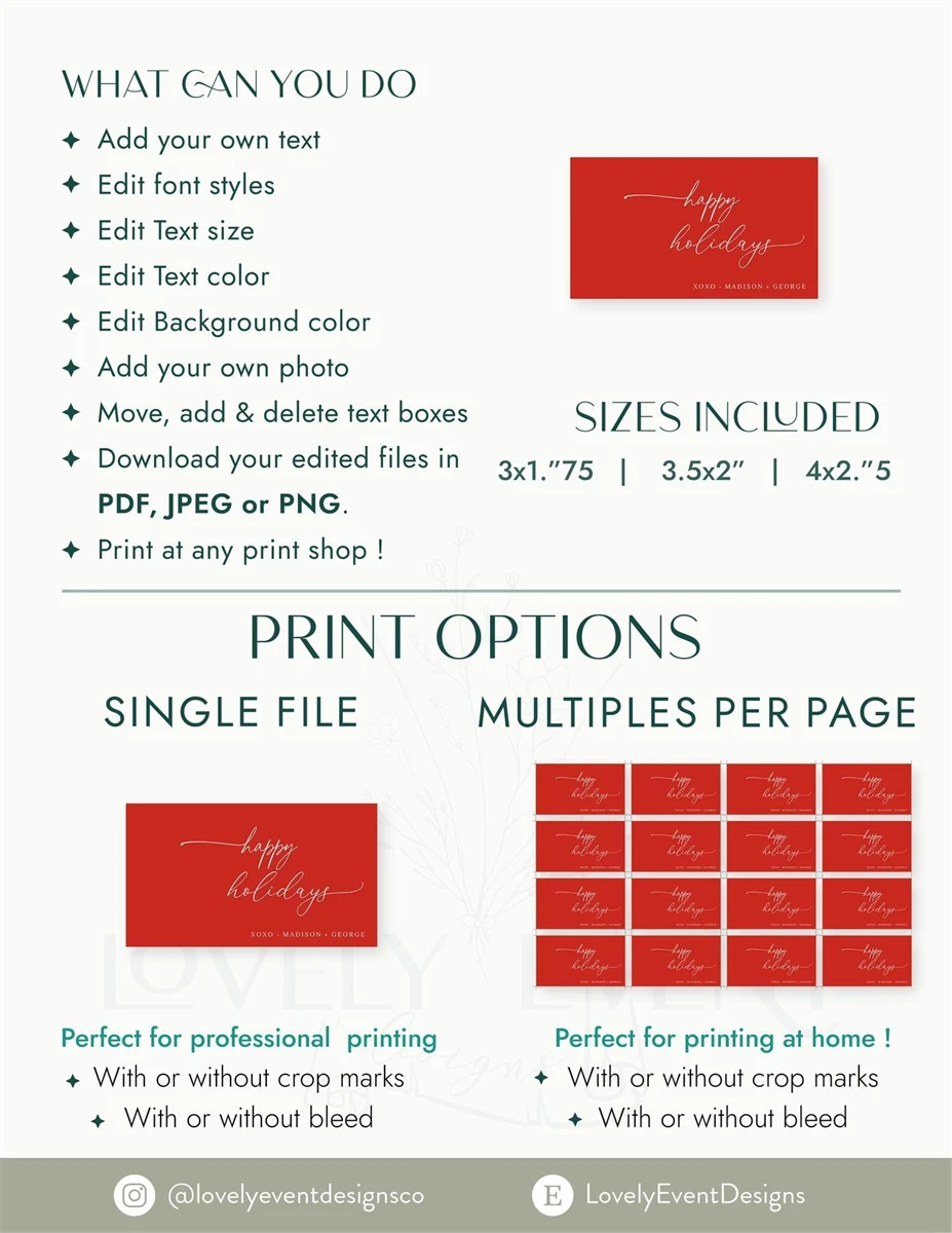Editable Christmas Favor Tags Holiday Gift Tags, Holiday Tag