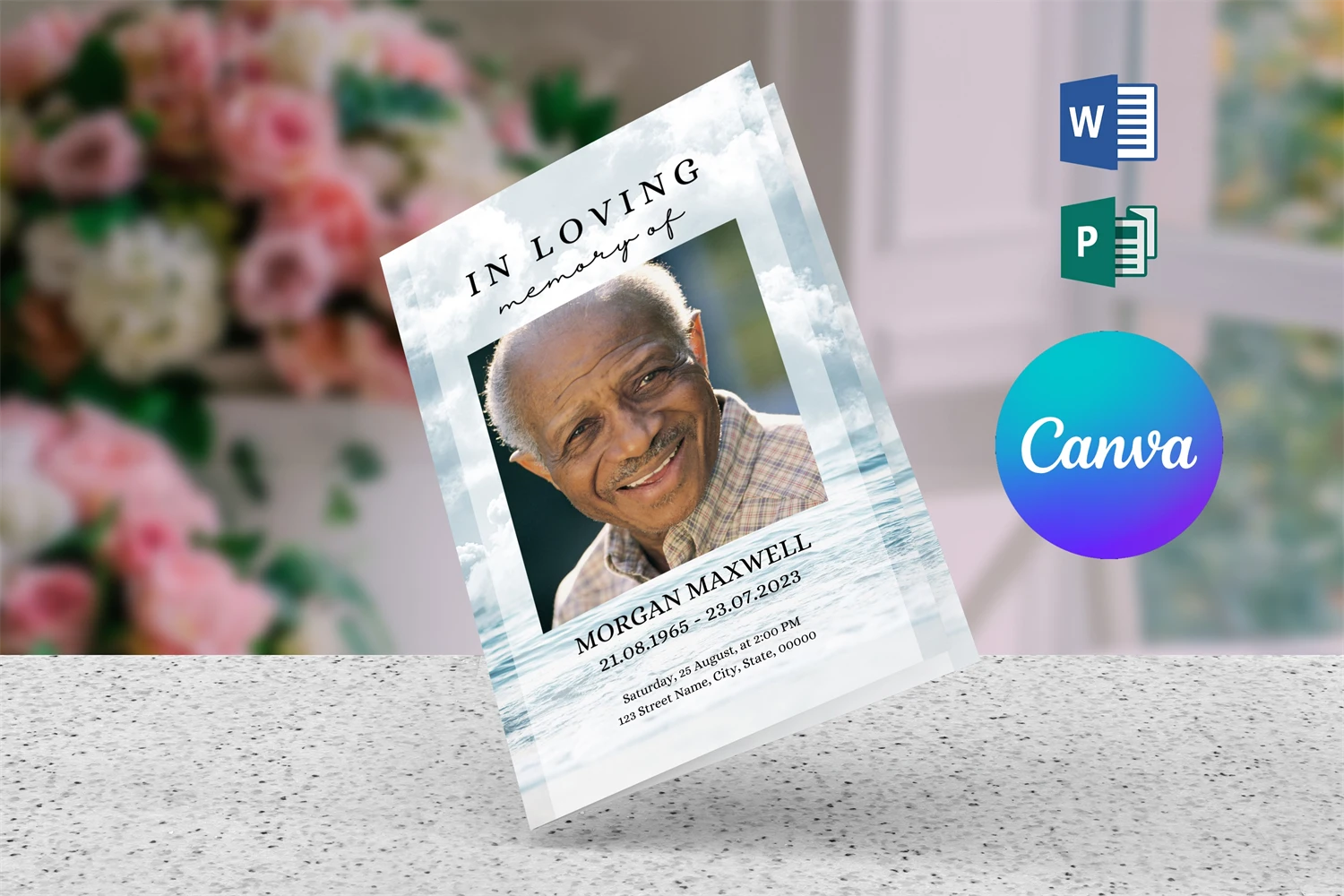 8.5x11 Inches Microsoft Word, Publisher and CANVA Funeral Program Template.