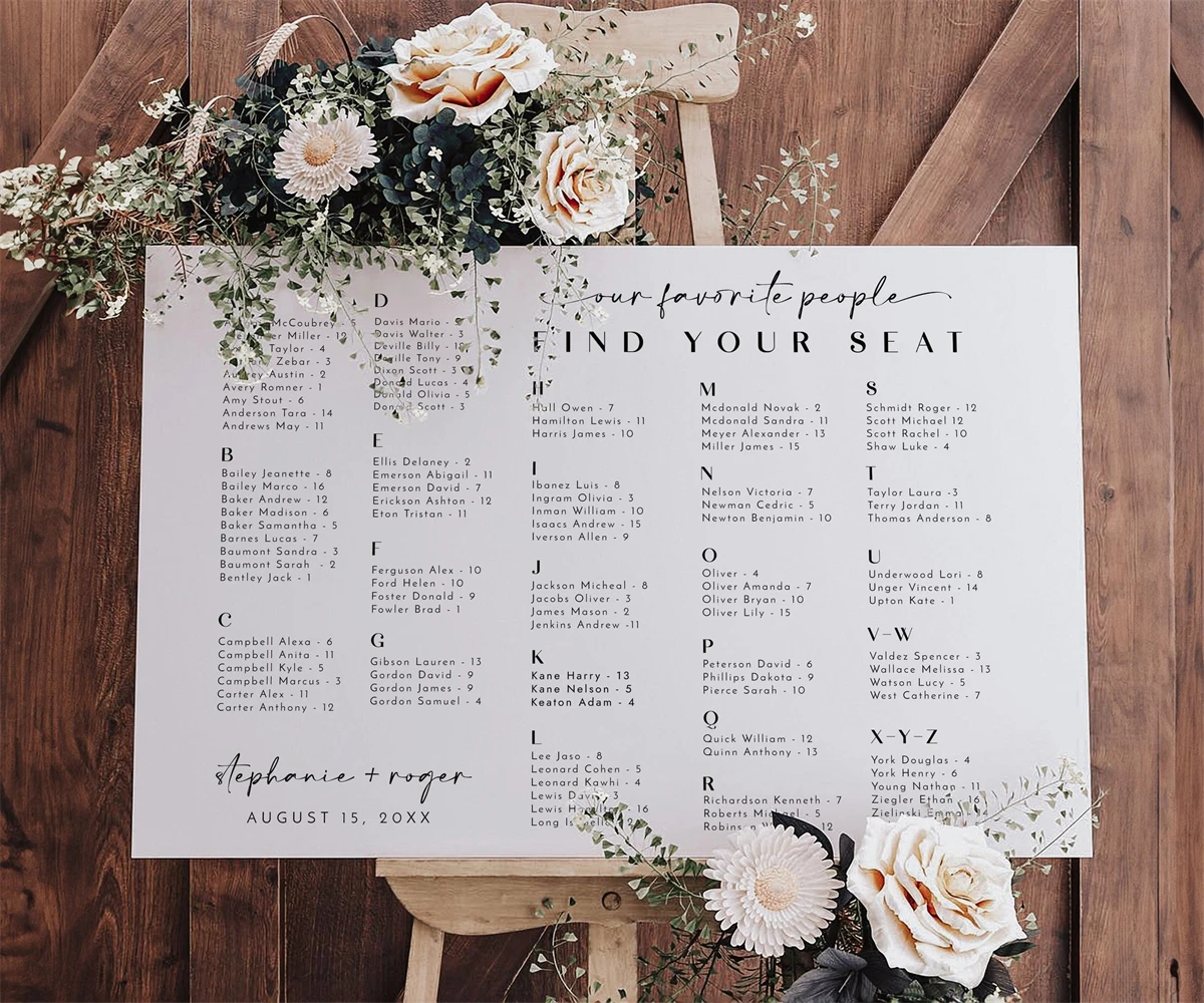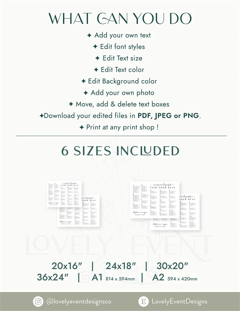 EDITABLE Wedding Seating Chart Template, Modern Minimalist,