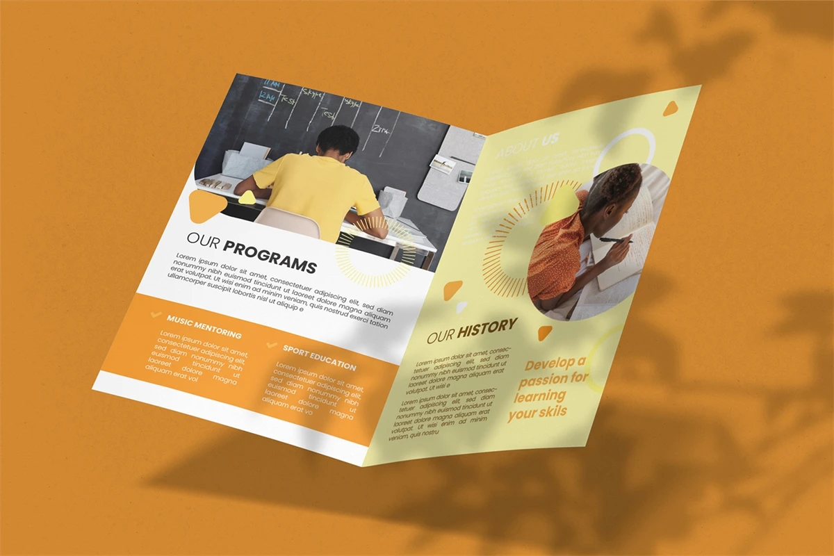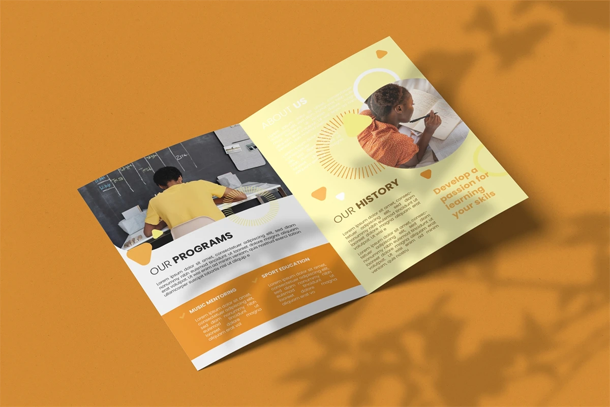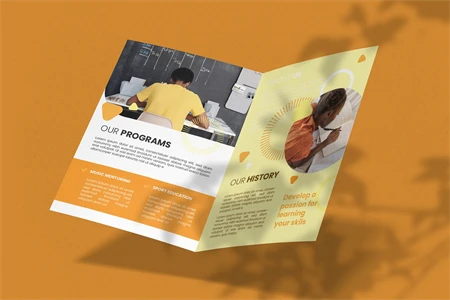 Education School - Bifold Brochure We present this Bifold Brochure for you, simple and very elegant, and this Bifold Brochure is suitable for all types of your business, made with Adobe InDesign (INDD), Adobe Photoshop (PSD) and Adobe Illustrator (AI), very easy to customize, Hope you Like it, dont forget to rate, Thanks.