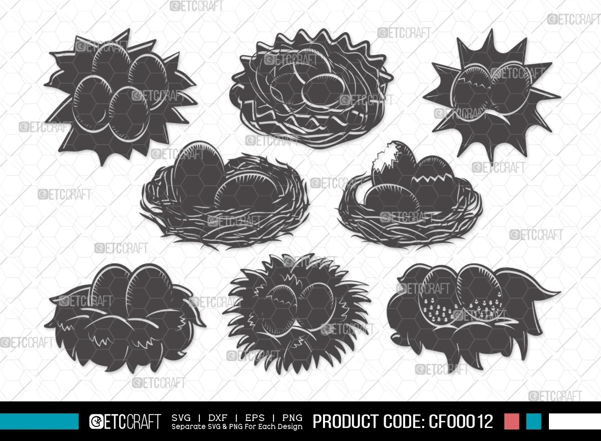 Introducing our Eggs Nest Silhouette Birds Eggs Nest SVG Cut File Bundle – a delightful digital resource tailored to enhance your creative projects with a touch of nature's elegance. Explore a variety of high-quality silhouette clipart and cut files featuring charming egg nests and birds.