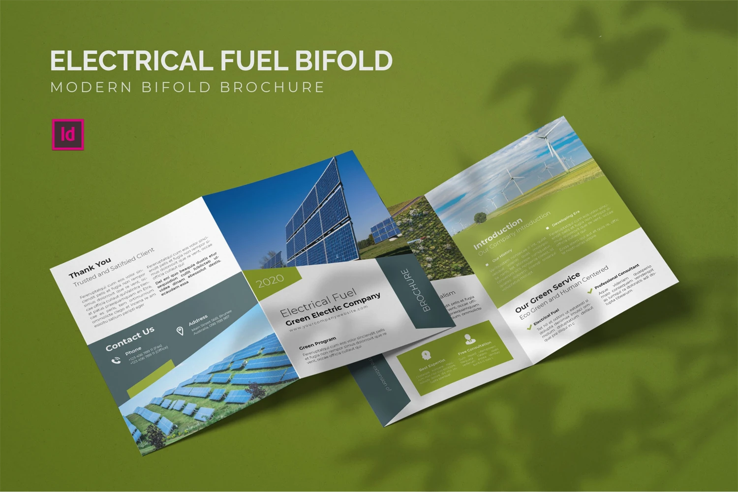 Electrical Fuel - Bifold Brochure We present this Bifold Brochure for you, simple and very elegant, and this Bifold Brochure is suitable for all types of your business, made with adobe inDesign, very easy to customize, Hope you Like it, dont forget to rate, Thanks.