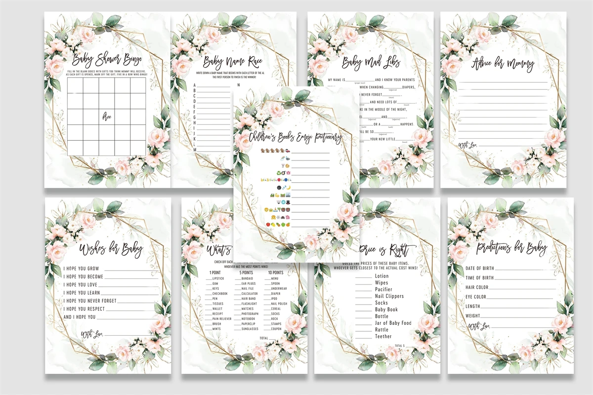Elevate your baby shower with our ELEGANT BABY SHOWER GAMES! Add a touch of sophistication and style to your celebration with this exquisite set of 9 games. From timeless classics to modern favorites, these games promise joy and laughter for all your guests. Infused with elegance and charm, each activity is thoughtfully designed to create cherished memories and celebrate the imminent arrival of your little one. Watch as your event shines with refinement and fun, making your baby shower a truly elegant and unforgettable experience!