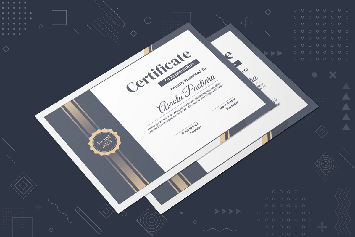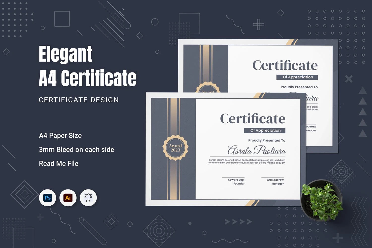 This certificate template can be used for a variety of different purposes in the realms of business, education, fashion, photography, food, lifestyle, architecture, and so on. You dont need to create them from scratch; it's time-consuming. It is completely customizable to suit your brand's colors and corporate fonts.