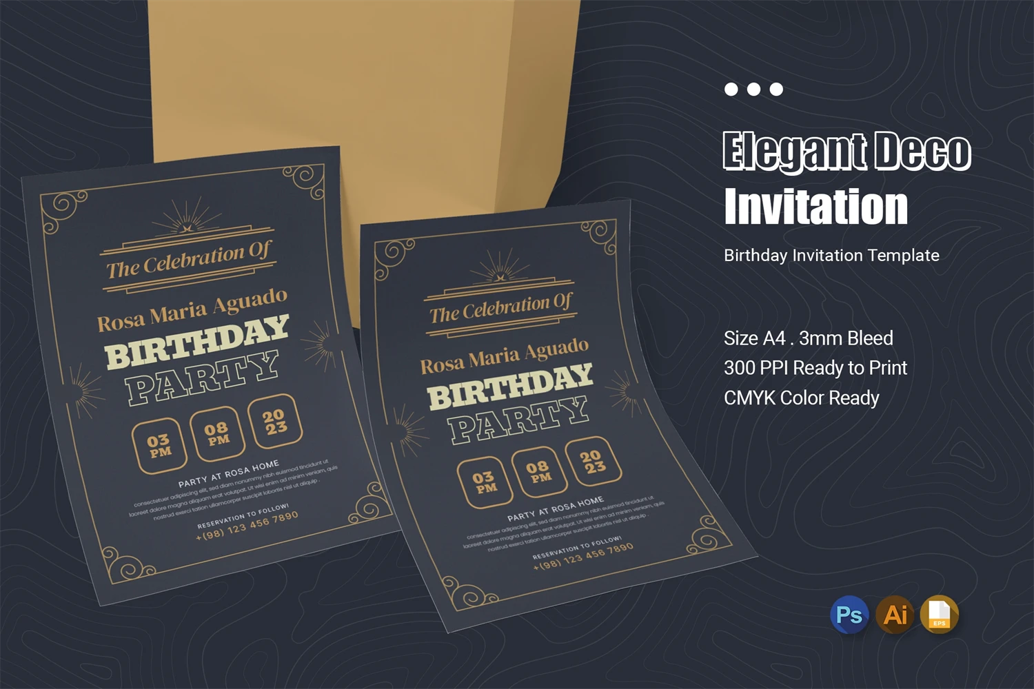 Of course you want to invite friends to your birthday party with the best invitations! Impress the invited guests with your style of invitation, by using this invitation card template. You can easily edit & customize each of the designs because every component is well organized and editable.