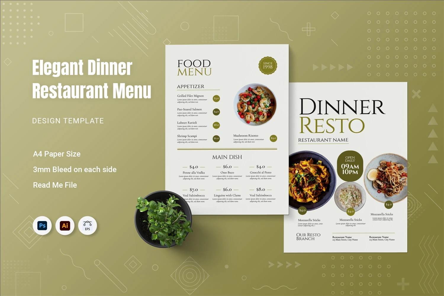 Utilizing enchanting imagery and versatile ordering options, you possess the capability to construct a menu that is equally unforgettable as the cuisine you provide. Let's generate a positive initial impact by selecting our template for your menu.