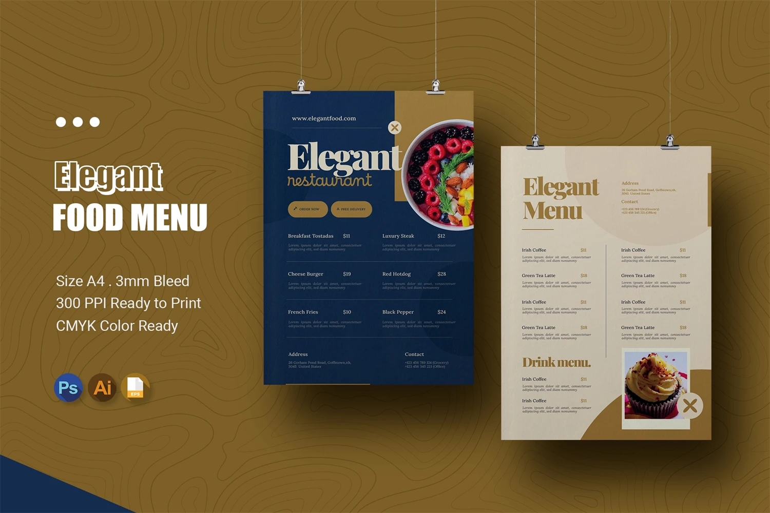 This Menu is great for displaying your restaurant menu in an eye pleasing way. Attracting customers with an easy-to-read restaurant menu certainly makes closing easier, right? easily editable according to your needs, this restaurant menu is perfect for promos, cafes, hotels, resort shops online etc.