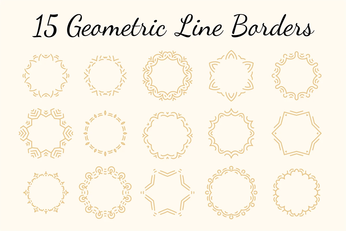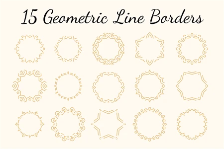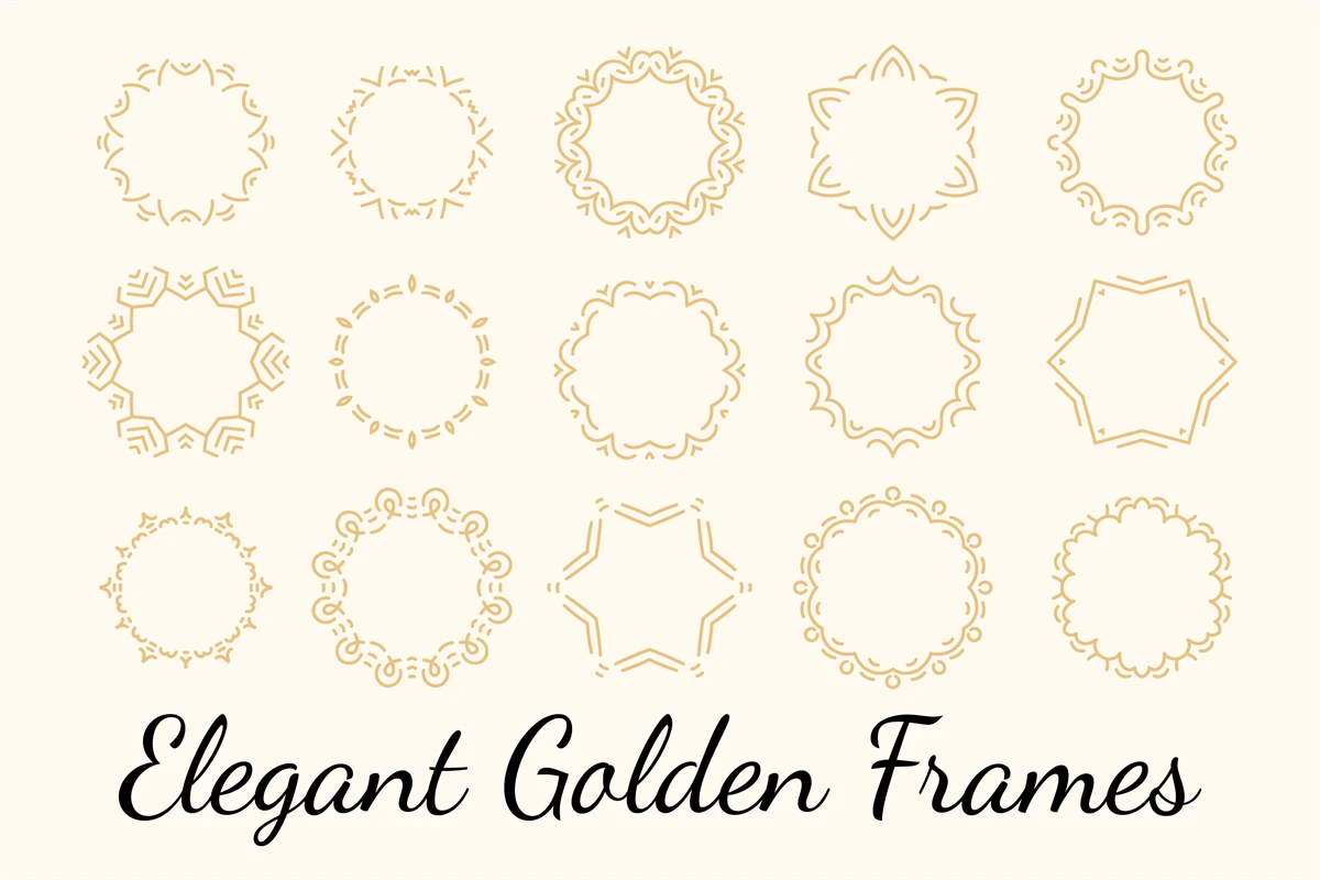 Elegant golden frames with round, flower and star shape. Abstract geometric circle borders are perfect for wedding, invitation, greeting card, product design. Vector illustration.