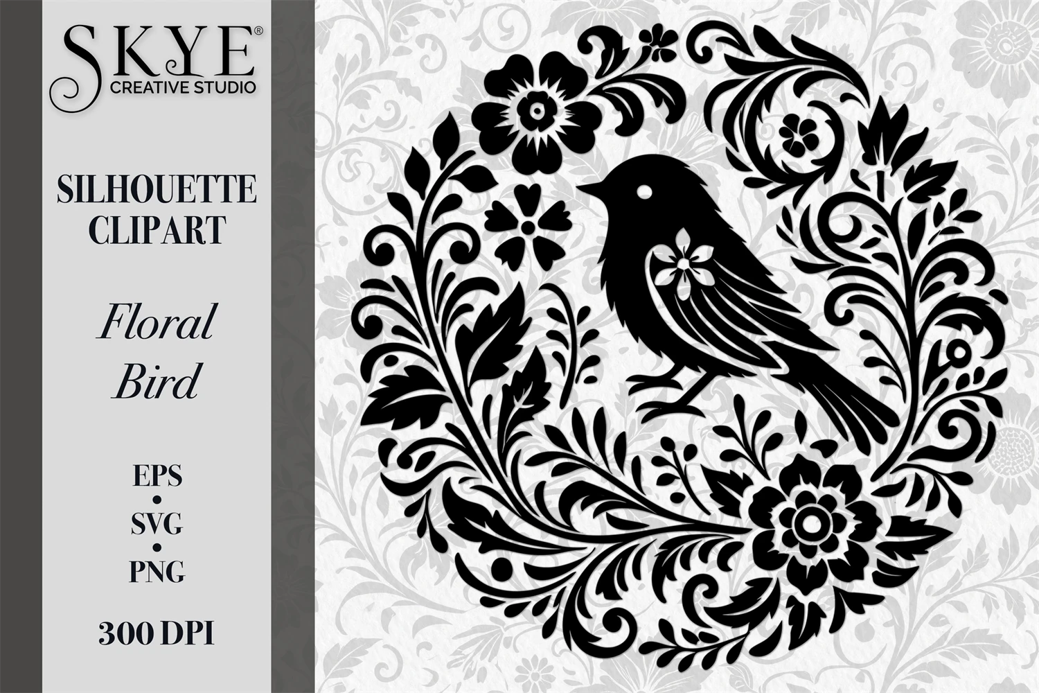 The artwork features intricate floral motifs, perfect for invitations, wall art, and digital projects.