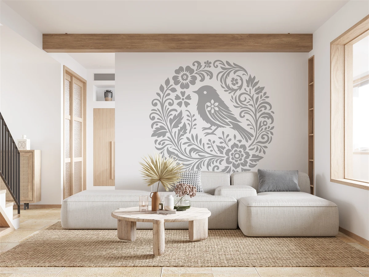 Elegant Black and White Little Bird Silhouette Illustration with Floral Motifs for Summer Designs