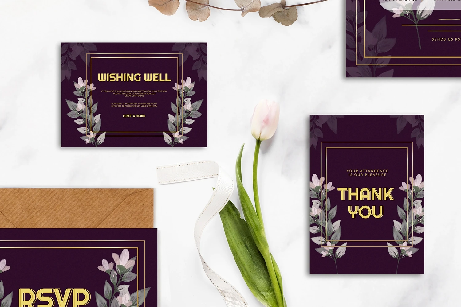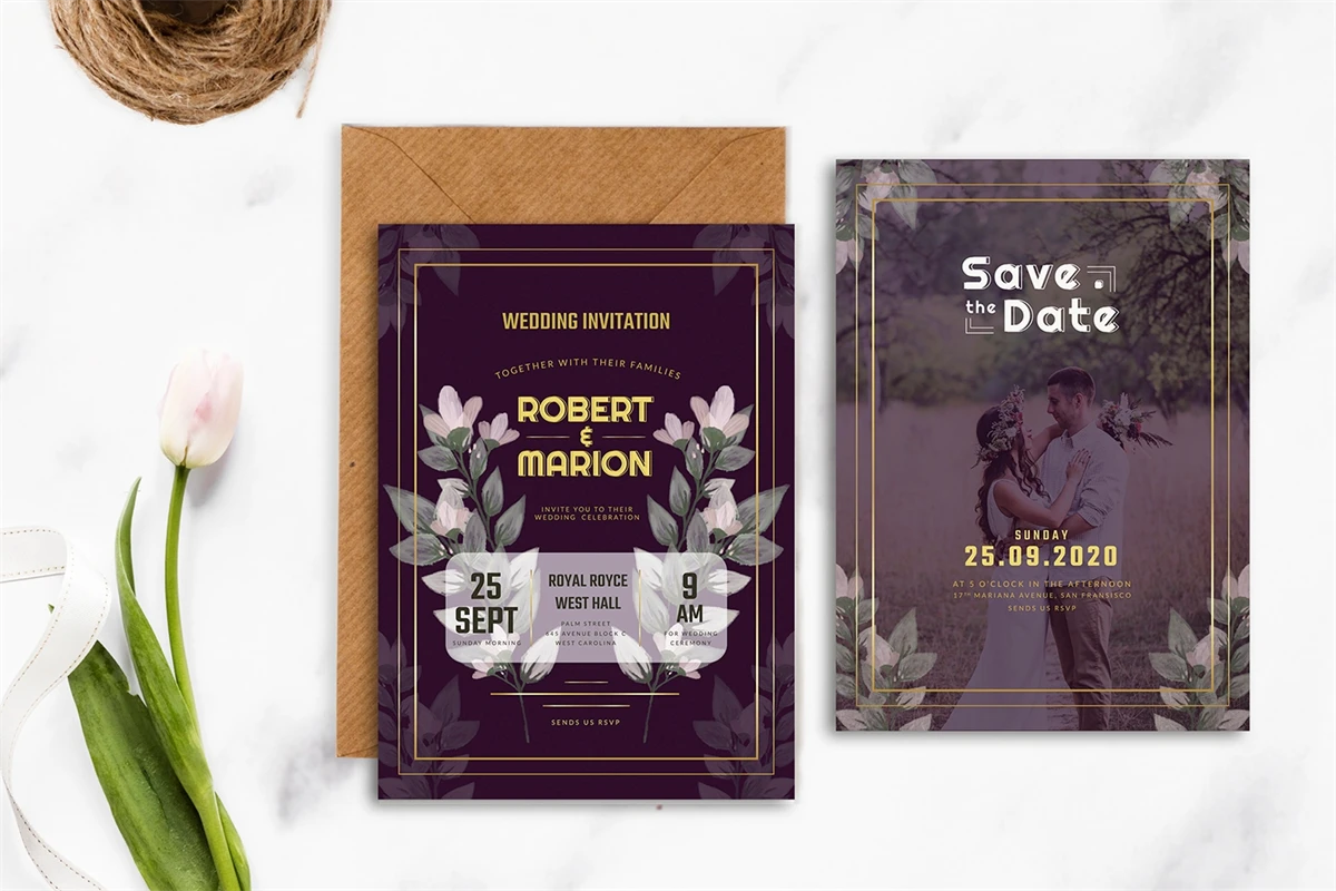 Elegant Watercolor Violet - Wedding Invitation, is an invitation card leaflet, poster design, etc. Simple and very elegant You can easily edit & adjust each design because each layer such as text, images and shapes are well organized and highlighted.