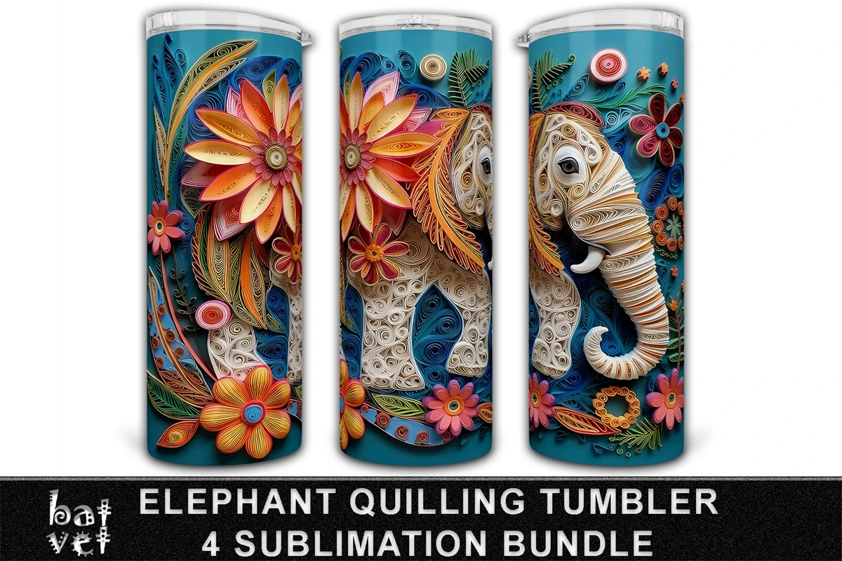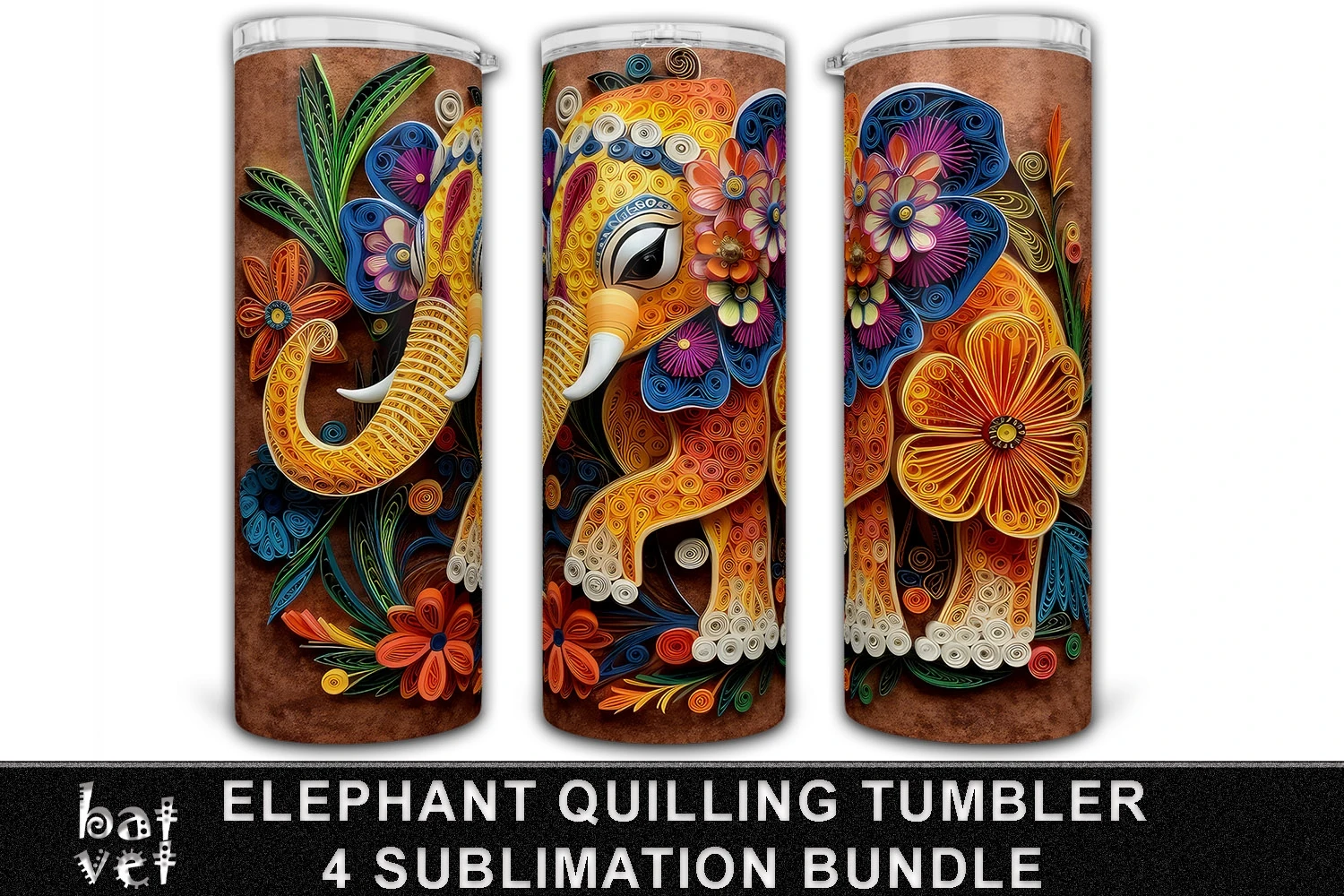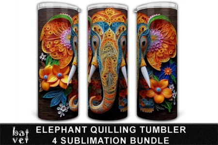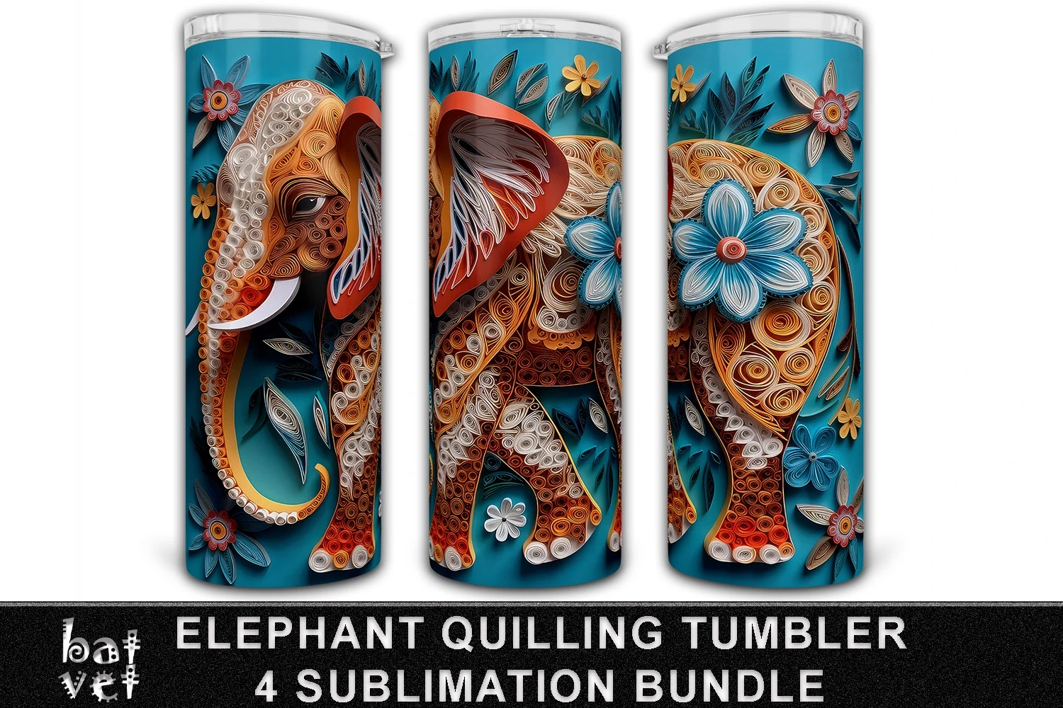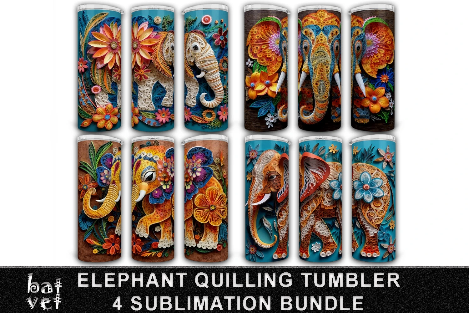 4 Elephant Quilling Tumbler Sublimation Bundle