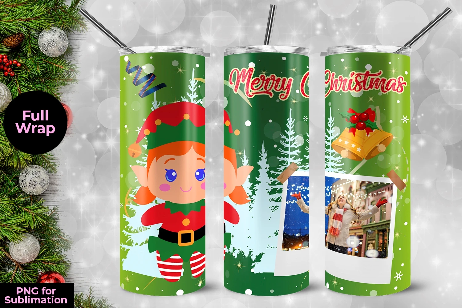 Elf Girl Merry Christmas Frame Skinny Tumbler Wrap Template