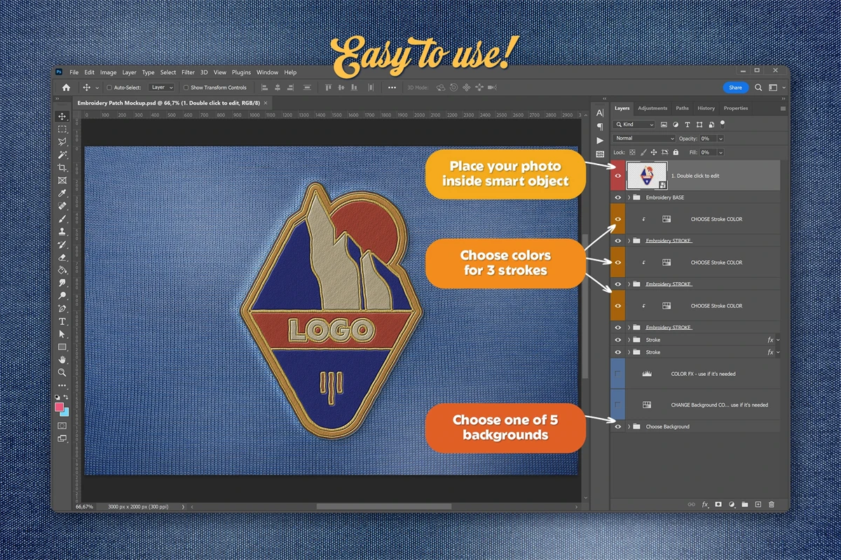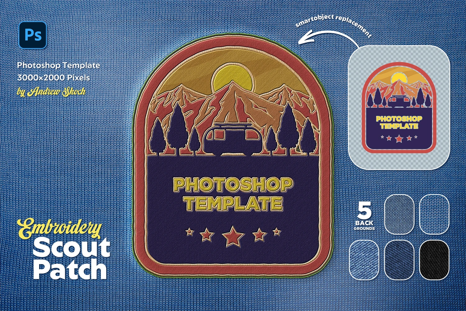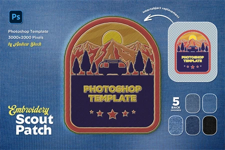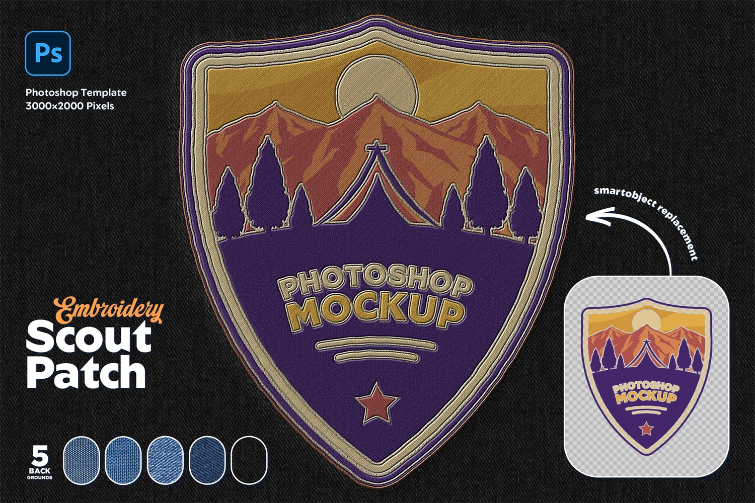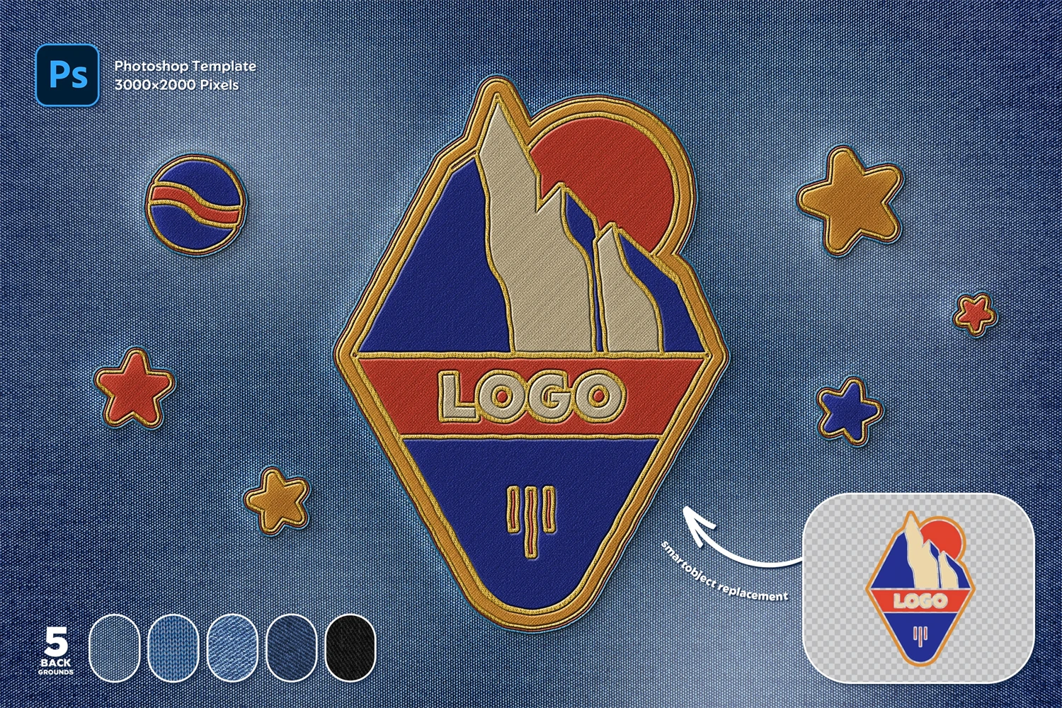 Using this easy-to-use PSD template is simple: just place your design into the smart object and you'll instantly get a realistic embroidery patch effect. This makes it a perfect choice for showcasing your designs in a professional and stylish manner.