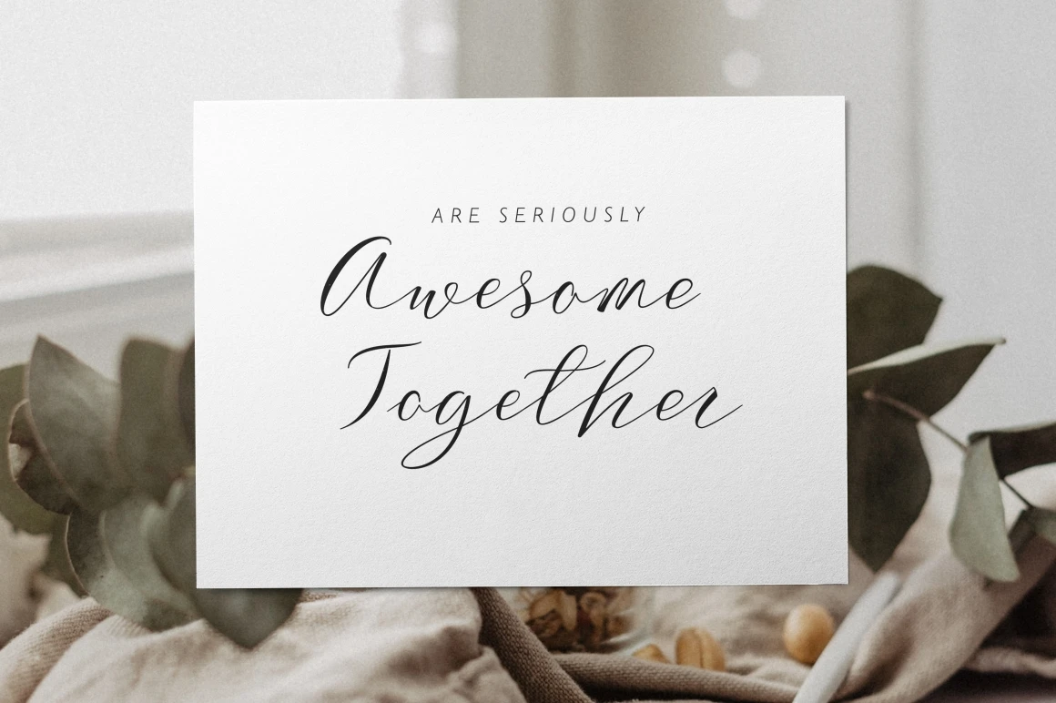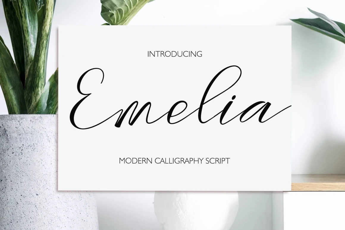 Emelia Script is modern calligraphy script font, every single letters has been carefully crafted to make your text looks beautiful. With modern script style this font will perfect for many different project, example: invitations, greeting cards, posters, name card, quotes, blog header, branding, logo, fashion, apparel, letter, stationery and more!