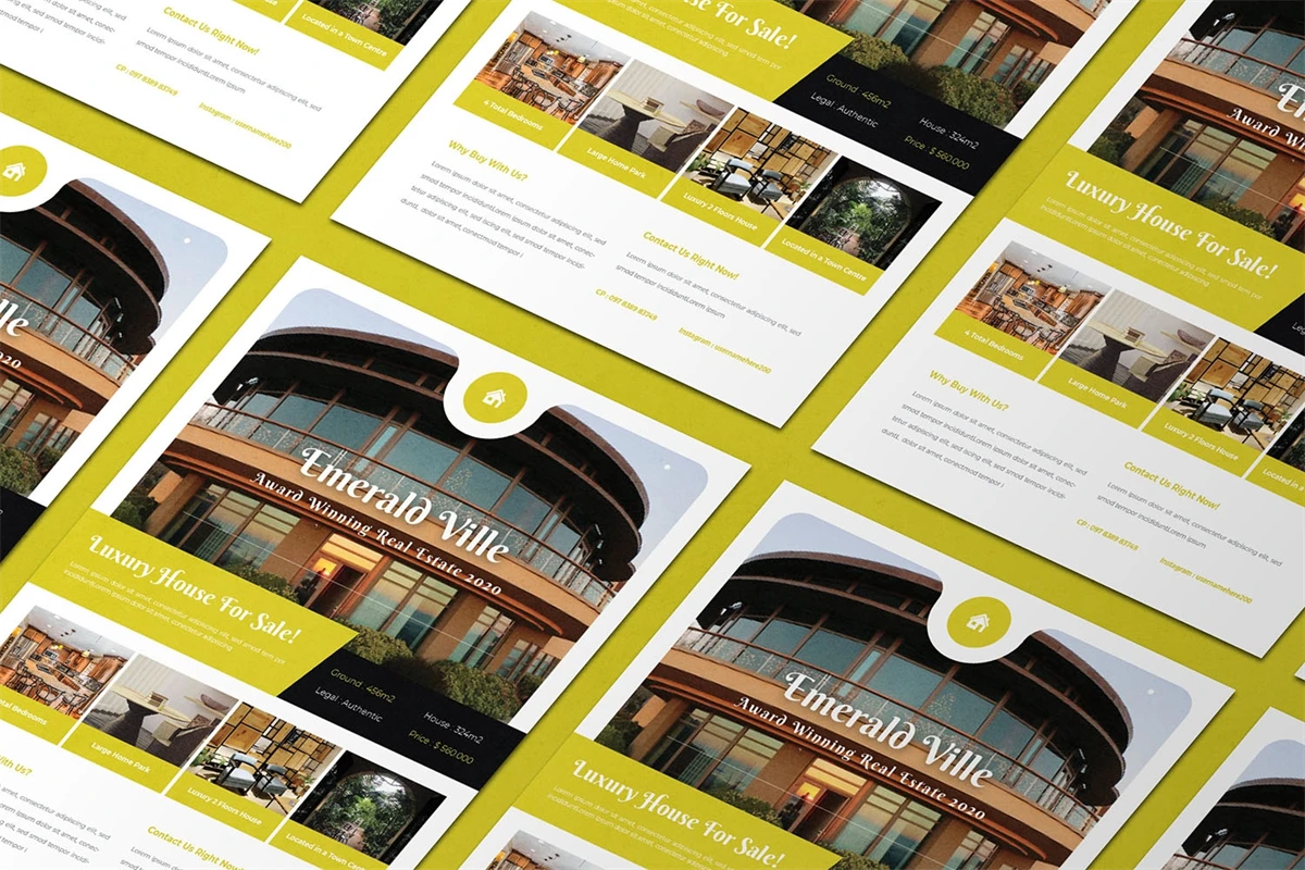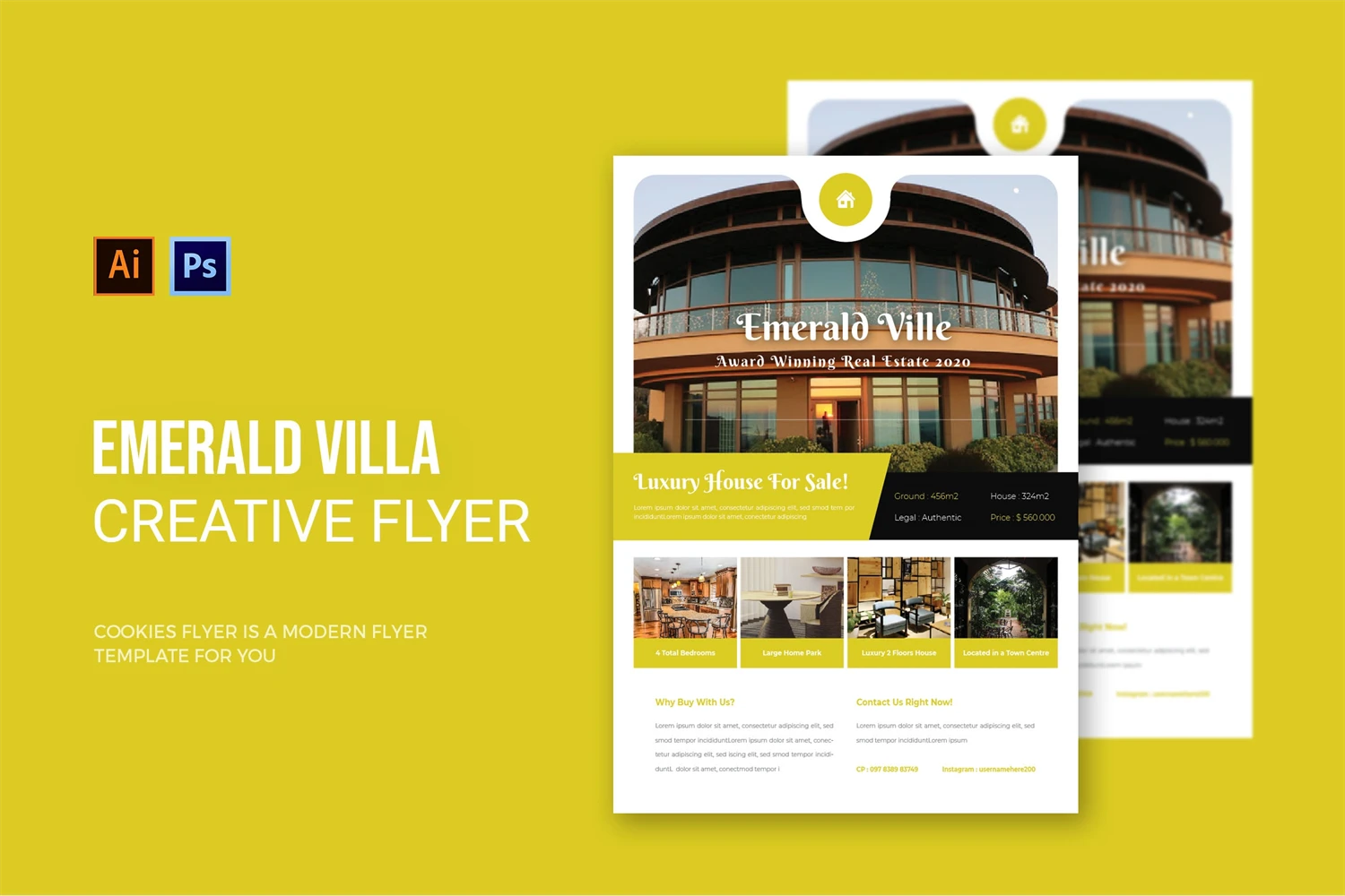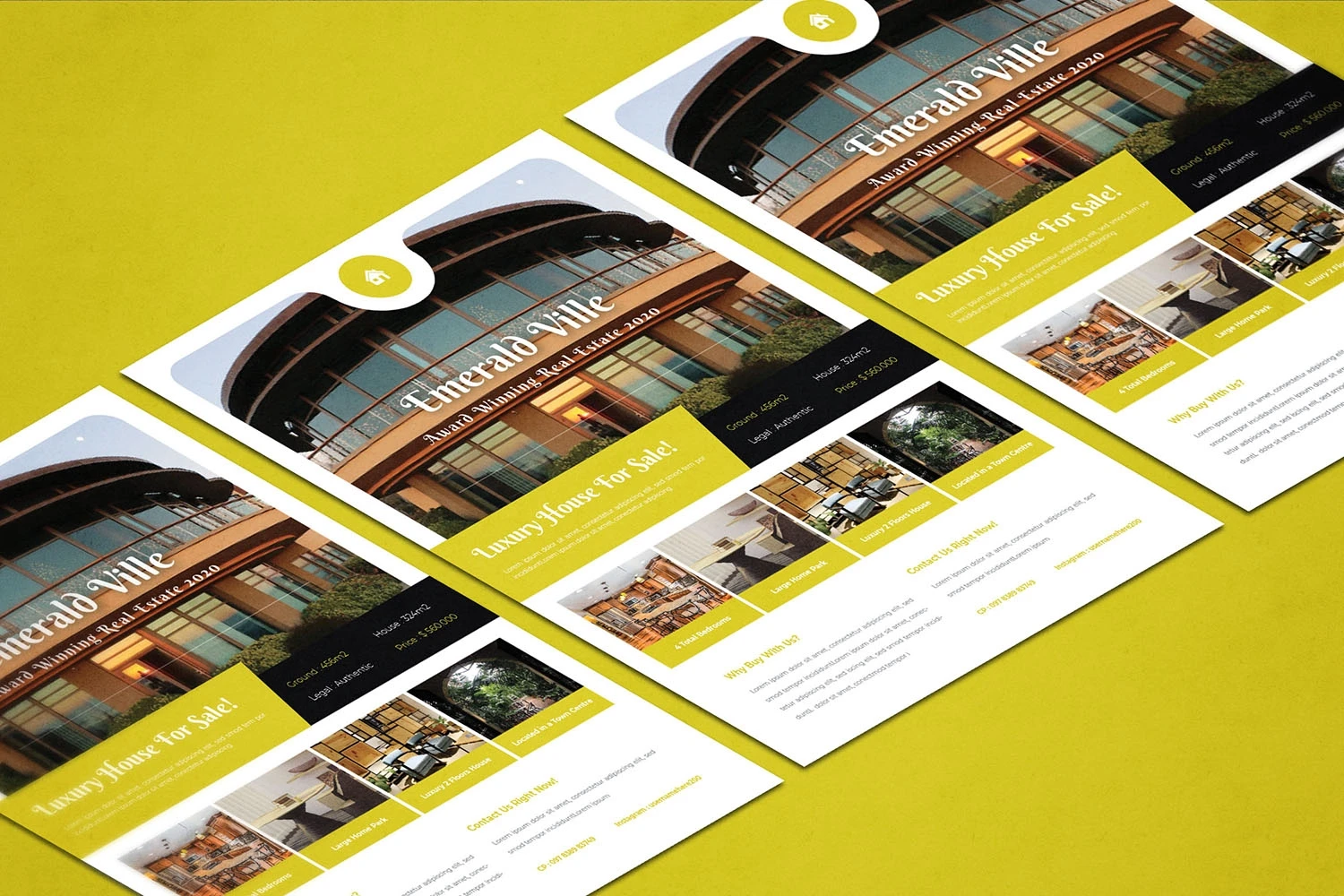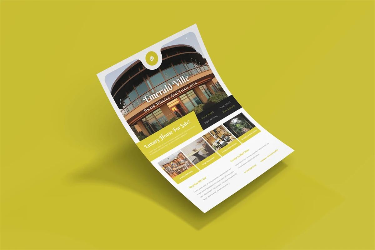 Emerald Ville - Flyer. This Flyer template is designed for your company's business needs. very clean and elegant, and also easily edited and adjusted to your liking