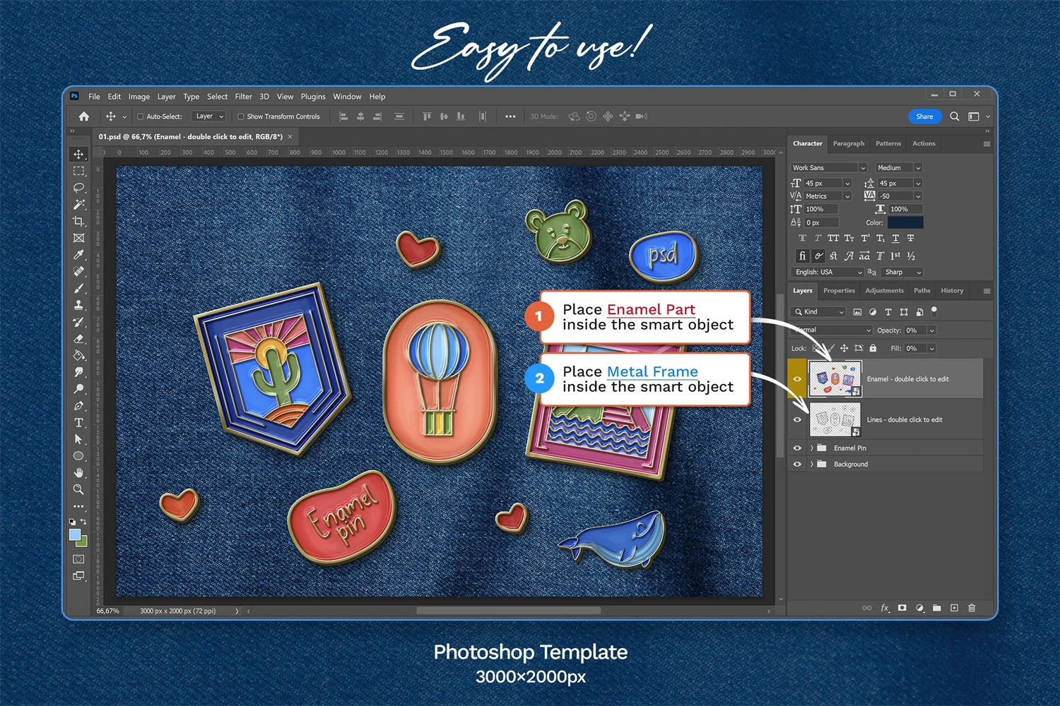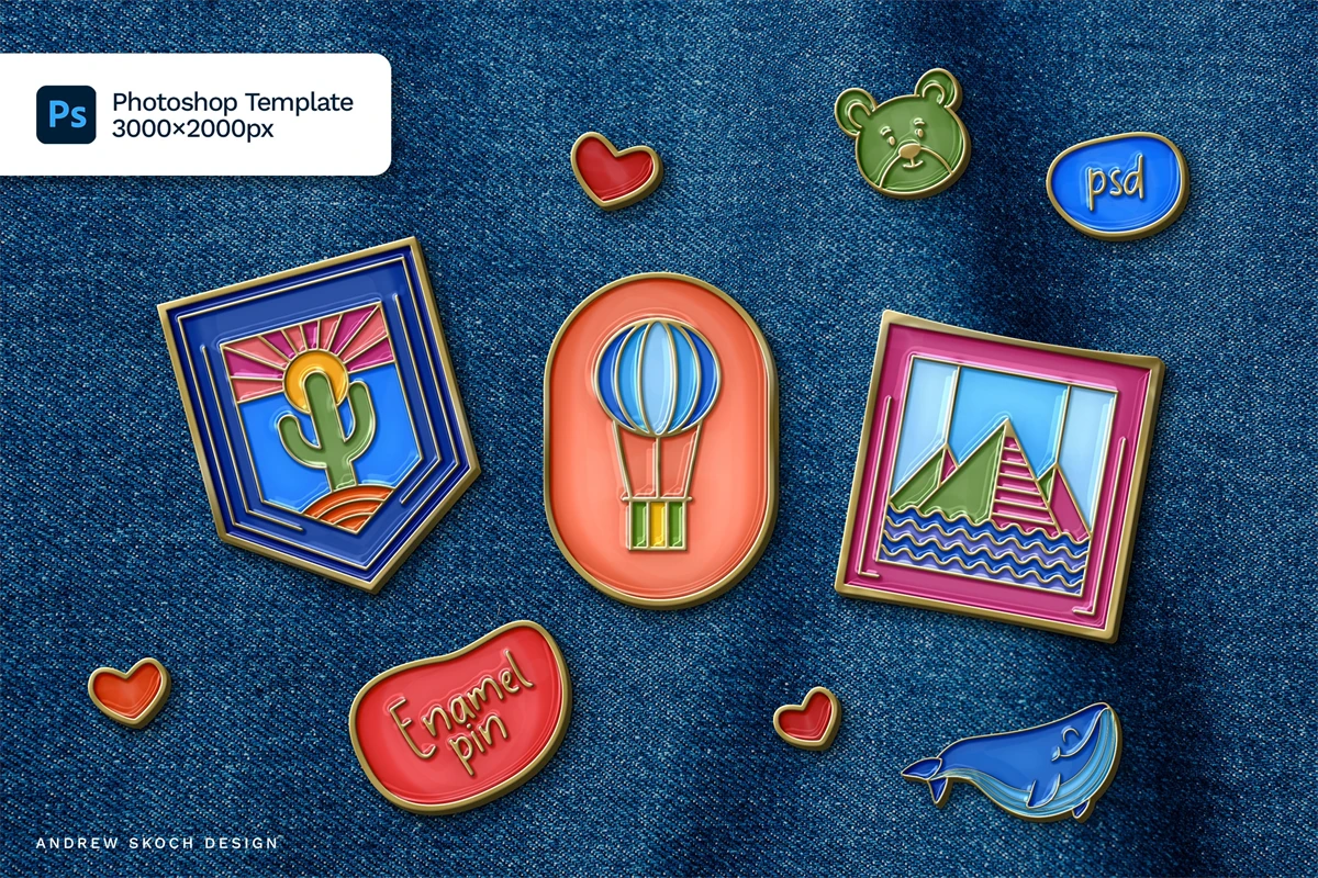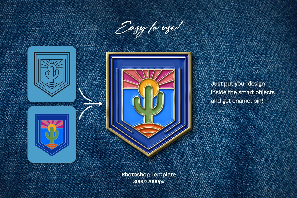 Perfect for artists, designers, and brands looking to present their custom enamel pin ideas. You can use 'Enamel Pin Template' for print and web graphics. Advertisement graphics, banners, Instagram and Facebook banners, YouTube graphics, social media posts, flyers and posters, movie titles, promo ads and much more!