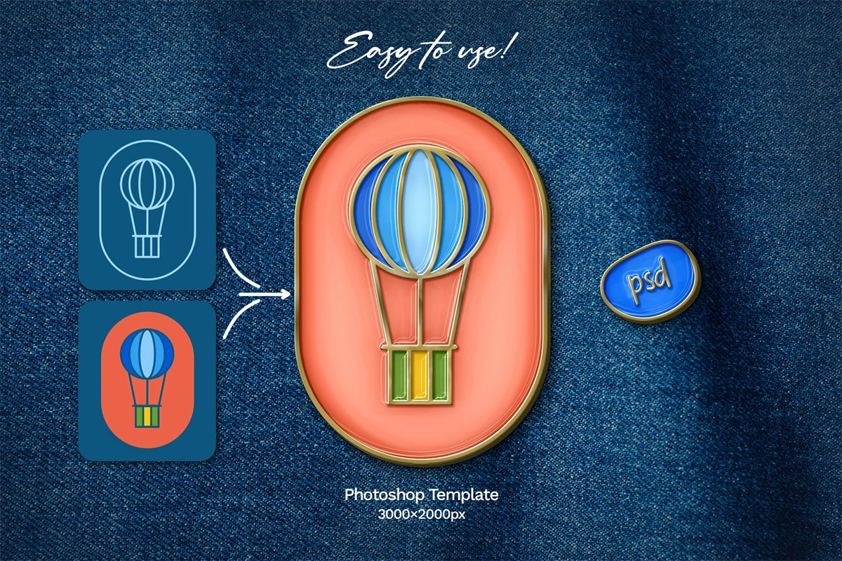 Create stunning enamel pin designs with this Enamel Pin Template featuring a realistic enamel effect that preserves your colors with precision. The template includes a metal gold outline for an authentic pin look, making it perfect for mockups and presentations.