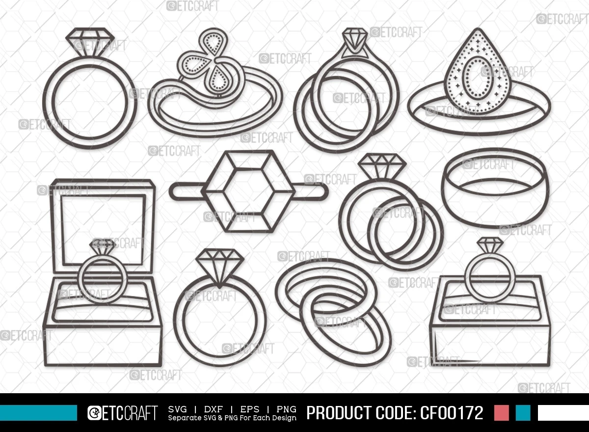 Enhance your design projects with our Engagement Ring Outline Diamond Wedding Ring Gold Love SVG Cut File Bundle. This digital collection offers meticulously designed SVG, DXF, EPS, and PNG files, featuring elegant outlines of engagement and wedding rings. Perfect for adding a touch of sophistication and romance to your creations, this bundle is a must-have for any design enthusiast.
