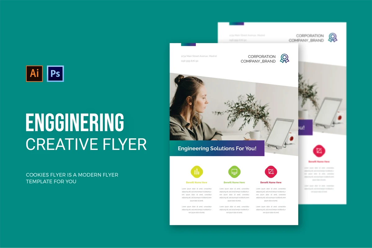Engineering Solution - Flyer. This Flyer template is designed for your company's business needs. very clean and elegant, and also easily edited and adjusted to your liking
