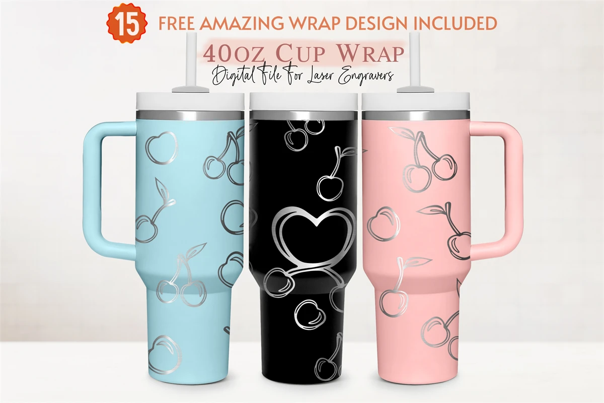 Engraved 40oz Tumbler Wrap Cherry, Cherry Lover,Summer Fruit