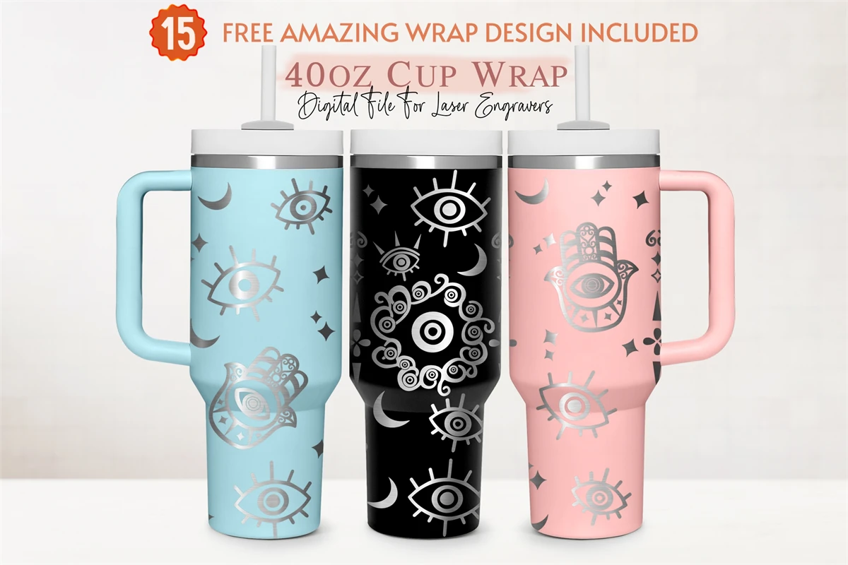 Engraved 40oz Tumbler Wrap Evil Eyes, Turkish Eye,Hamsa Hand