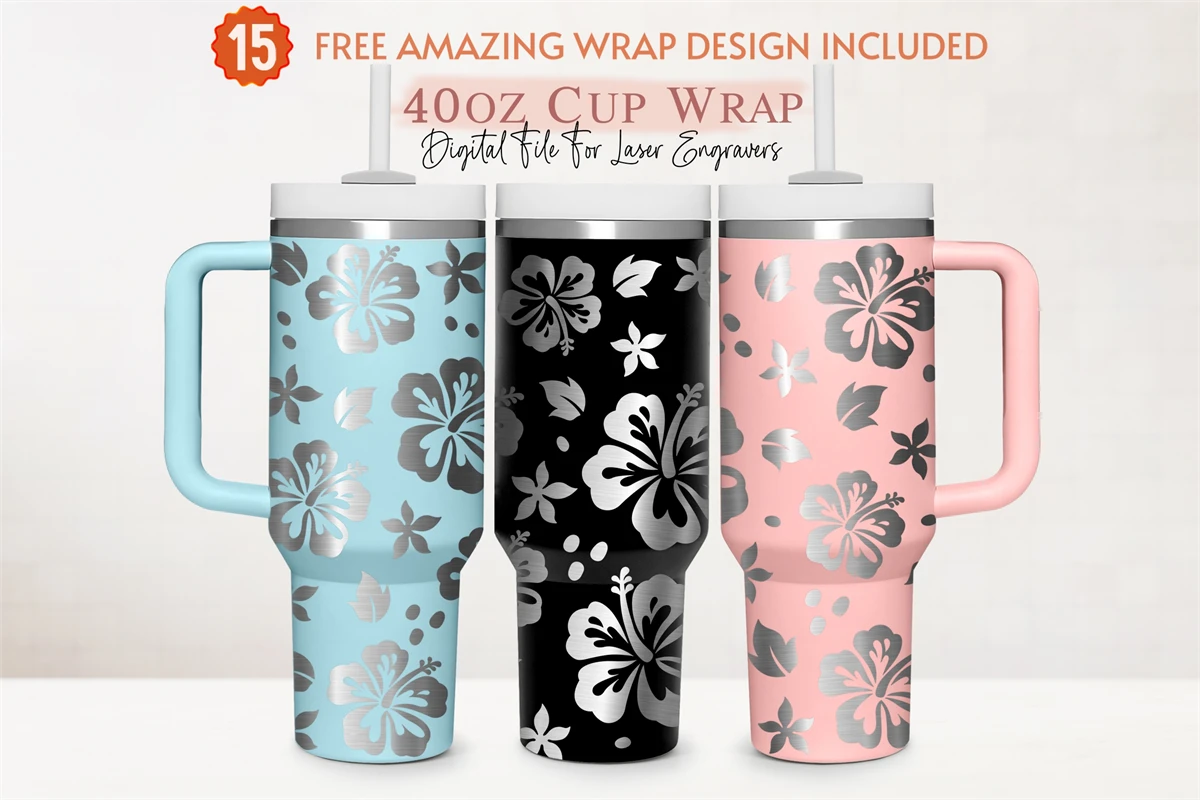 Engraved 40oz Tumbler Wrap Hibiscus, Tropical Flower, Summer
