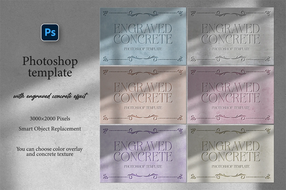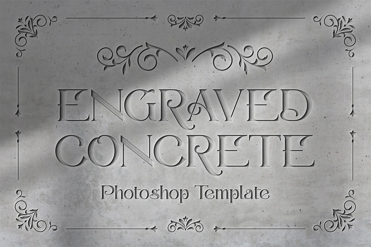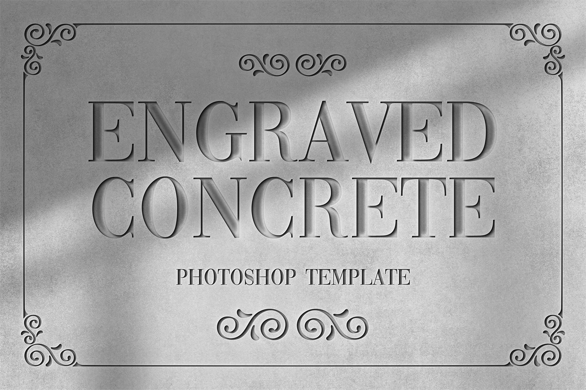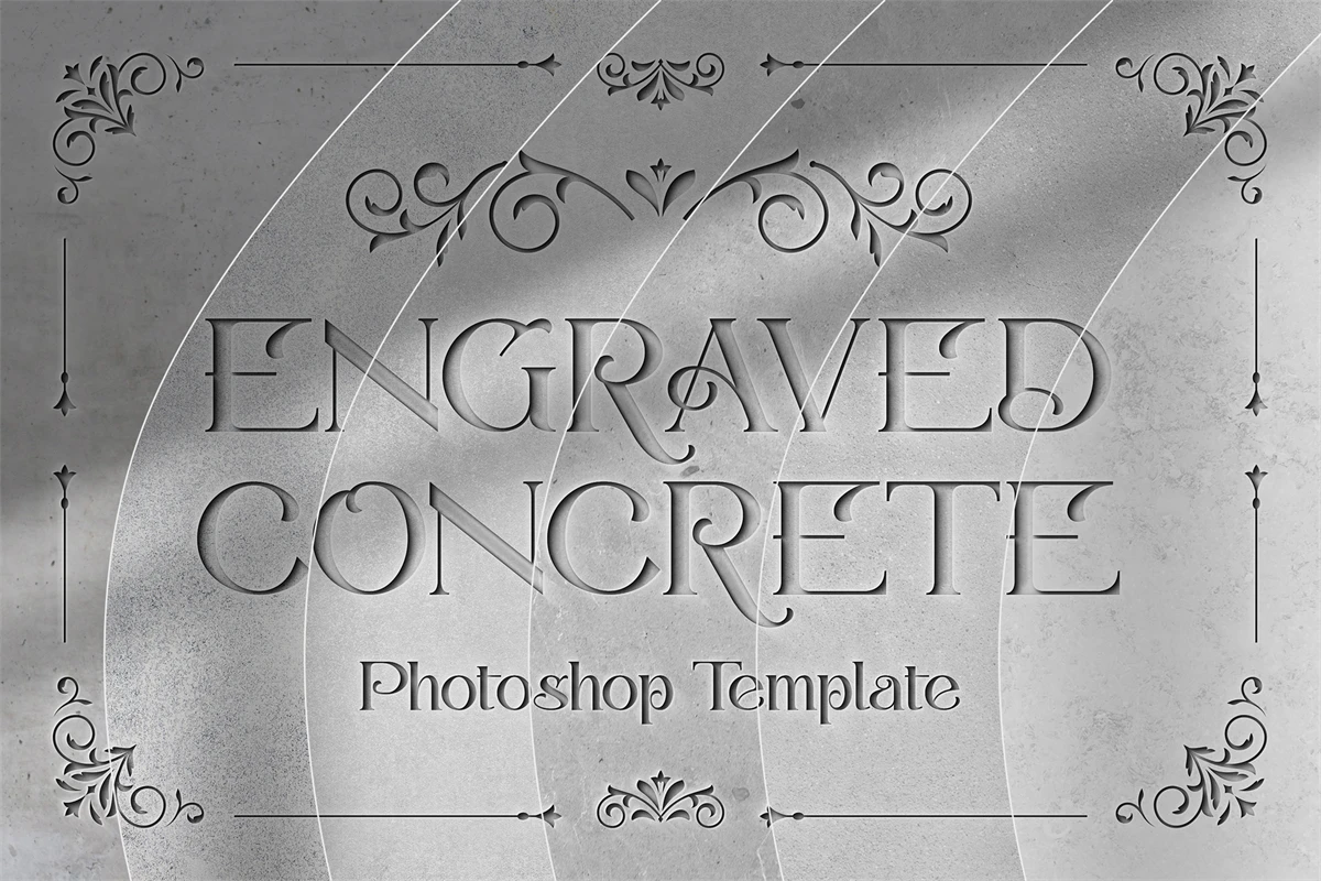 This captivating Photoshop template offers a sophisticated and realistic engraved concrete text effect, perfect for adding a touch of industrial elegance to your designs. The template features a meticulously crafted concrete background with finely textured surfaces, creating an authentic and tactile feel.