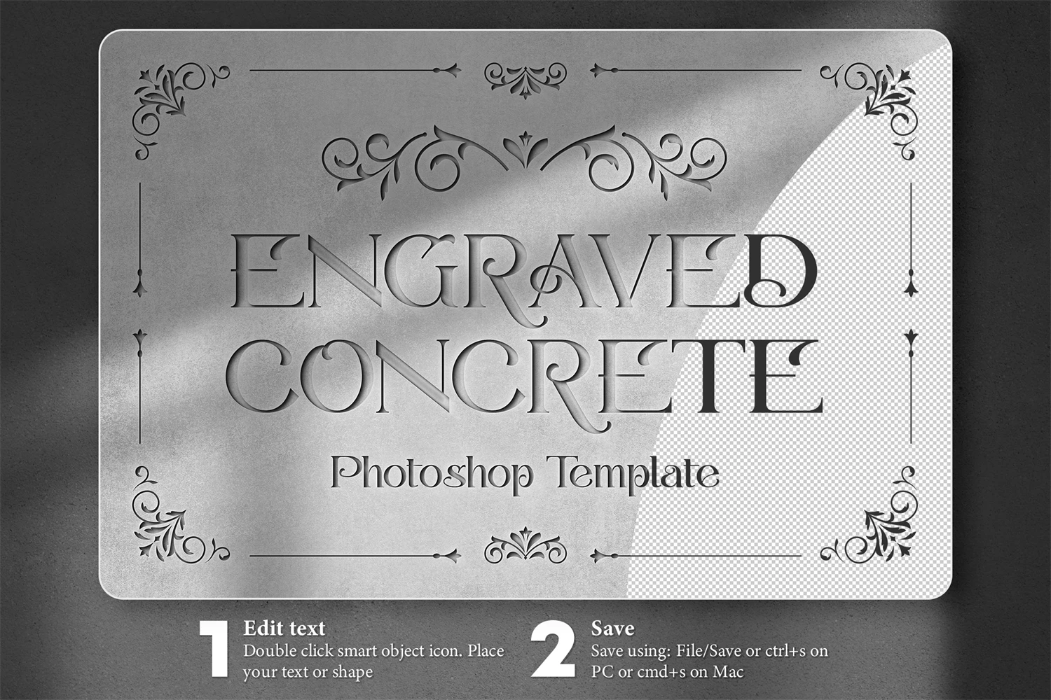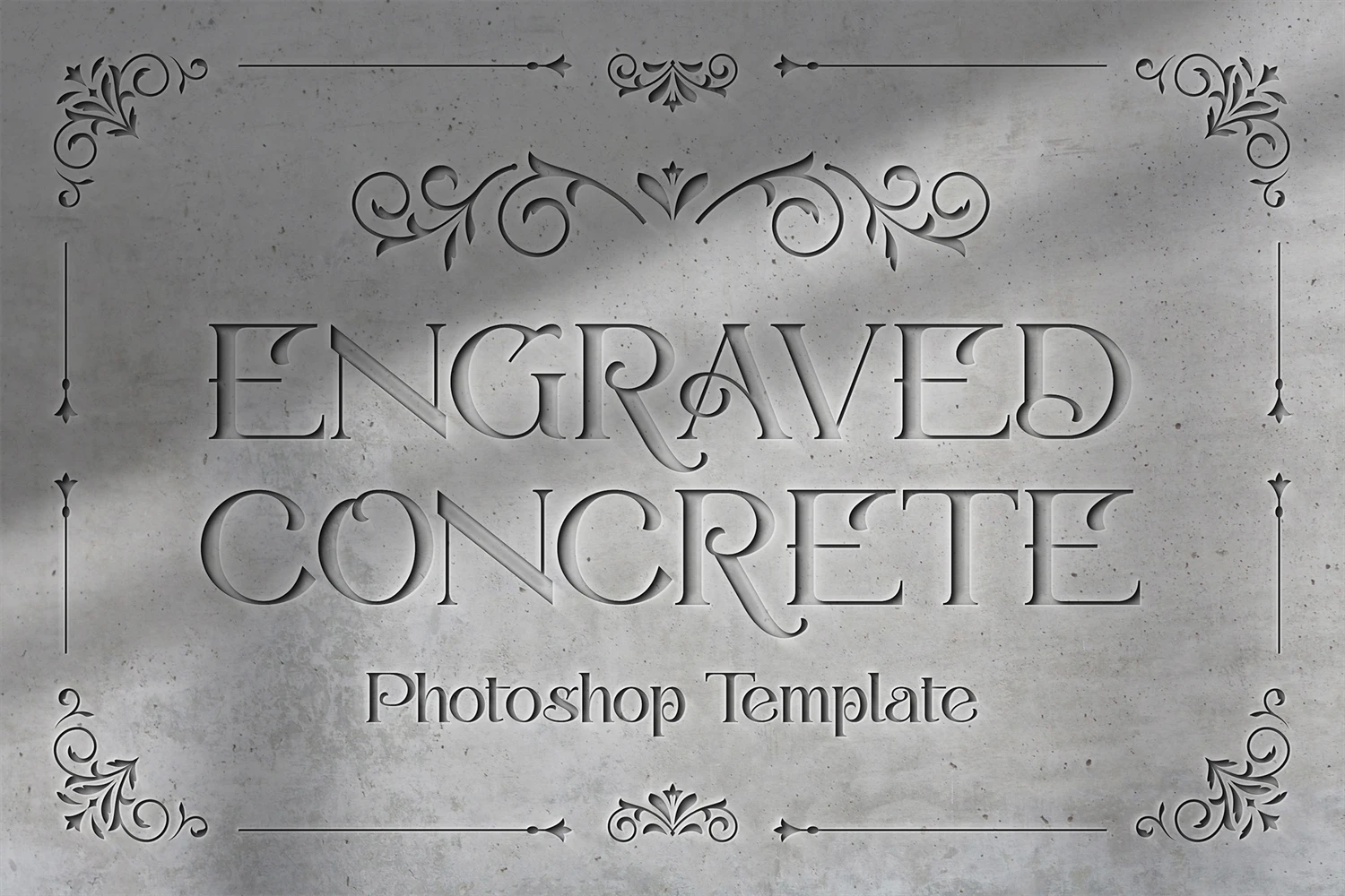 The engraved text effect is the centerpiece of this design, showcasing a skillfully carved appearance as if etched into the concrete surface. The play of light and shadows enhances the depth and realism of the engraving, providing a visually striking and attention-grabbing element.