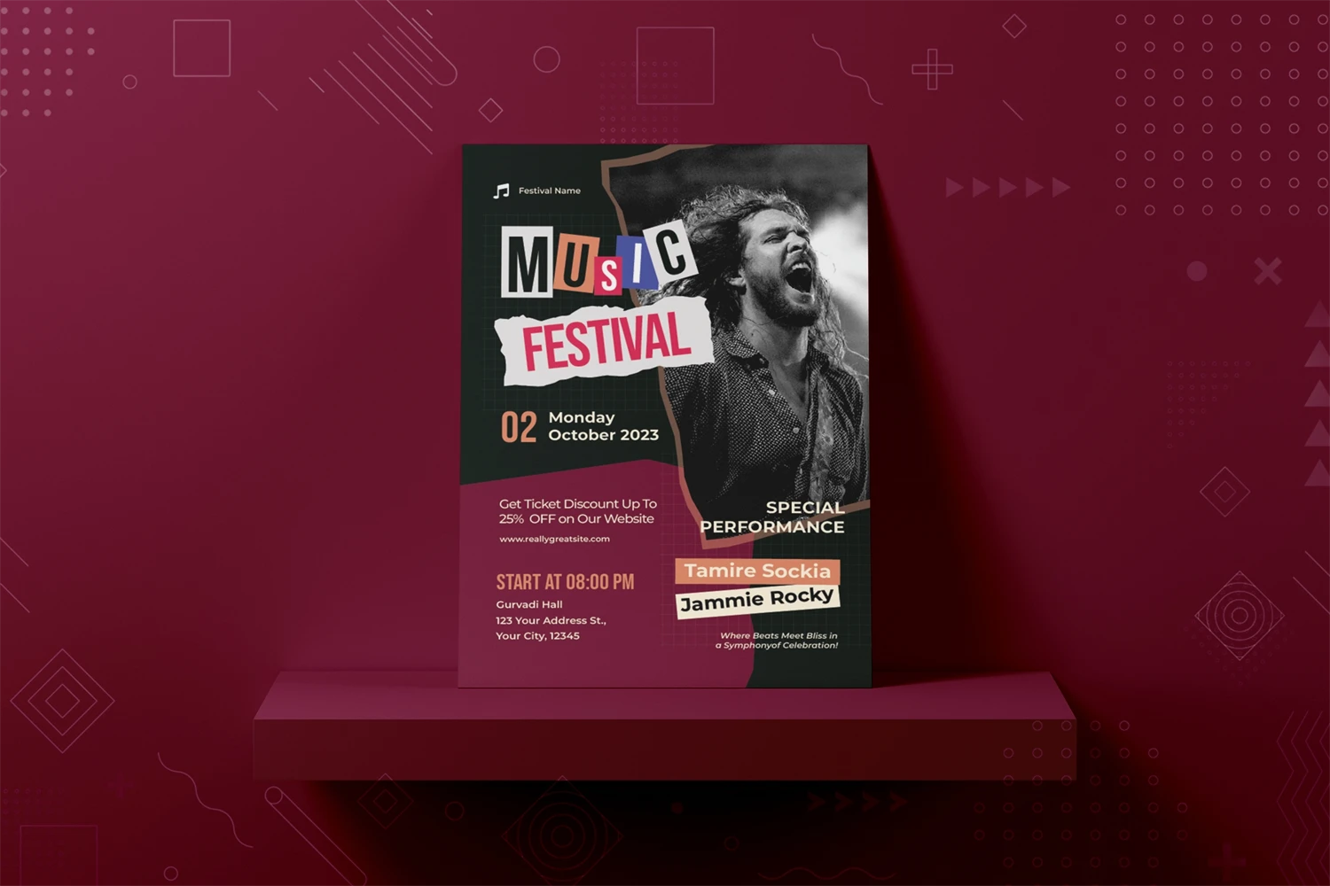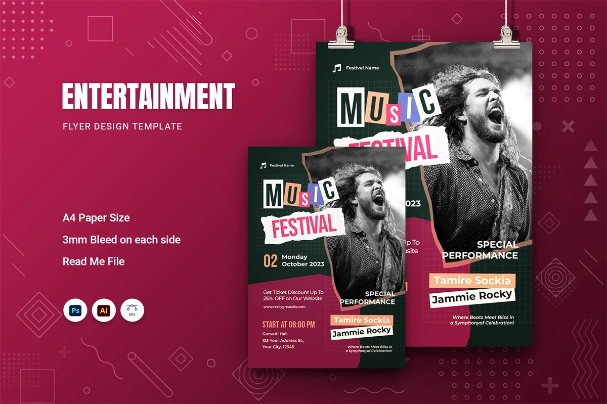 Here we provide our stylish flyer layout, created to help you grab attention with minimal effort. Seize the spotlight, make an impression, and go down in history.