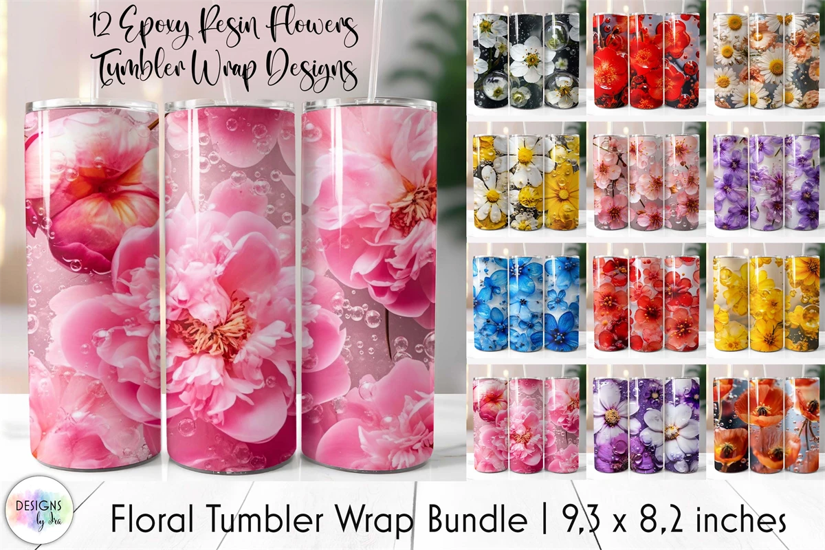 20 oz Tumbler wrap sublimation bundle with elegant flowers.