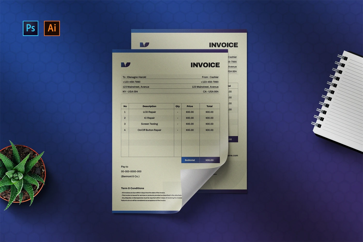 Erulo - Invoice Template The invoice designs from our templates will present your brand with a professional look. Your invoices will look stylish and functional.