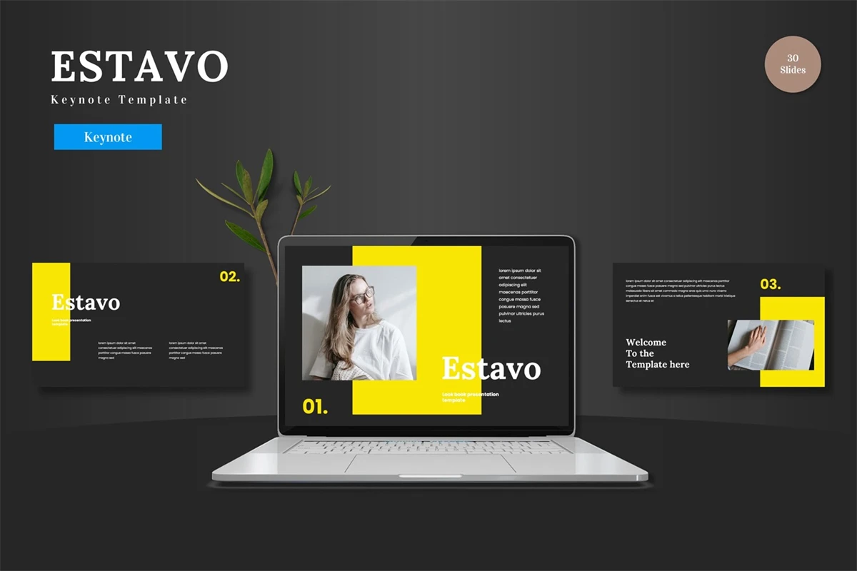 This is **Estavo - Keynote Template** - Get it now! Keynote Slides is a great template ready to use. Clean, scalable, colorful, and multipurpose. Suitable for Business, Pitch Deck, E-commerce, or Product promotion purposes.