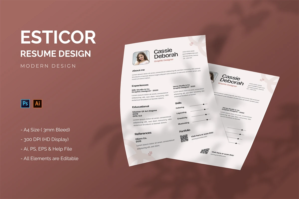 This is **Esticor - Resume Template** Get it now!, CV Resume for All business and personal needs. This design is great for your business and will make your interest, elegant, and easily editable according to your needs (**Adobe Illustrator, Adobe Photoshop**). You can use this CV Resume for personal purposes, or company purposes, I hope you enjoy this, Hope you Like it, and dont forget to rate it, Thanks.