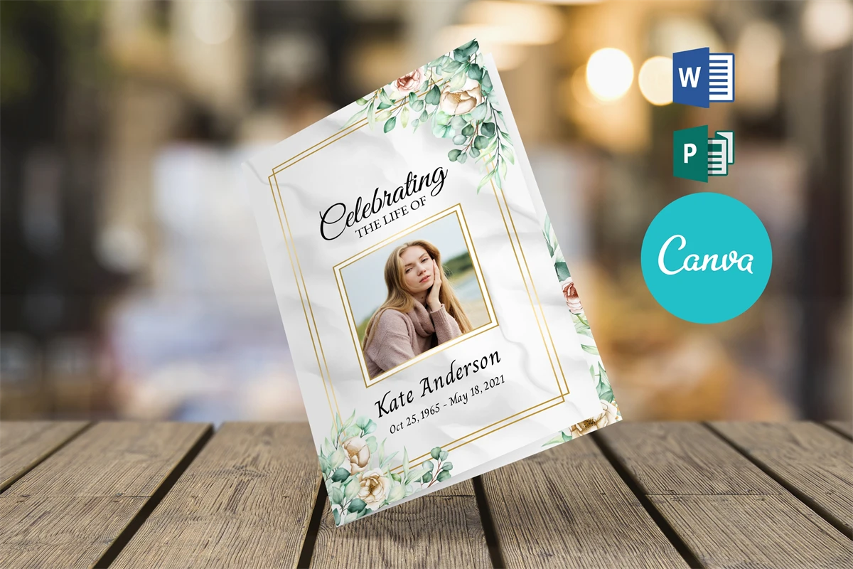 8.5x11 Inches Word, Publisher and CANVA Funeral Program Template.
