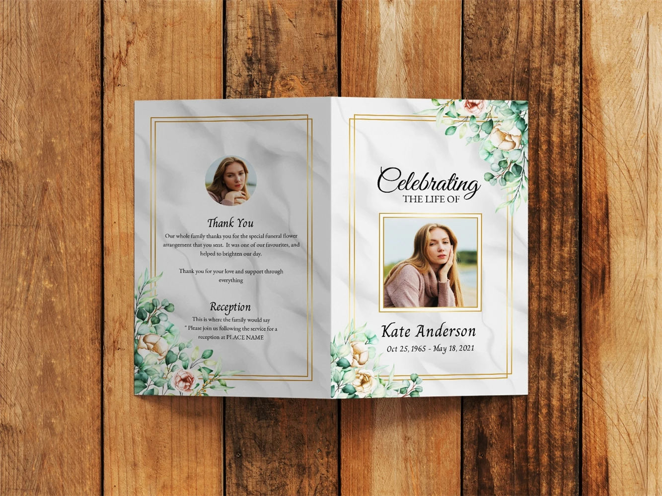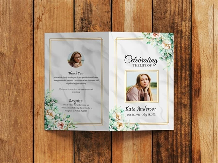 Funeral program template 4 page for women with Greenery Decoration. This template is a great way to honor your loved one.