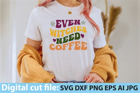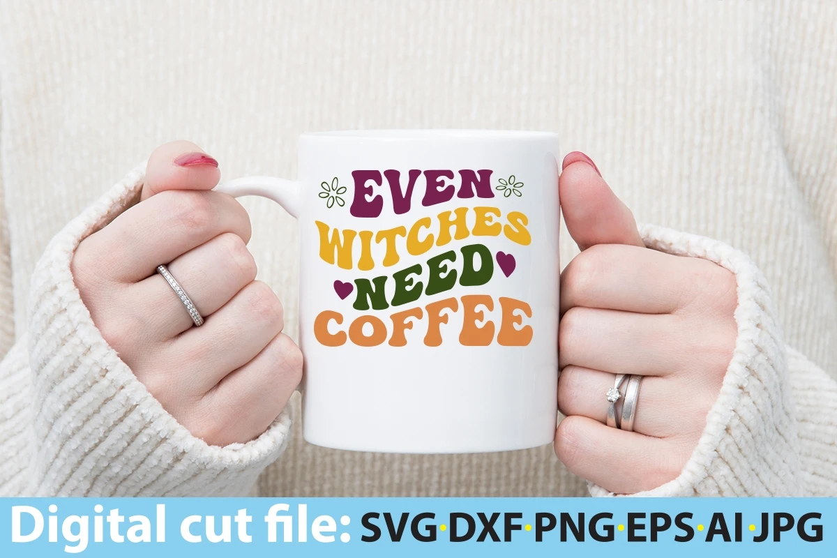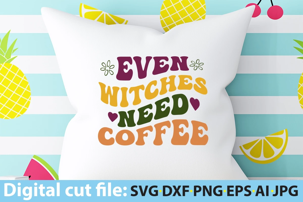 EVEN WITCHES NEED COFFEE Retro Halloween SVG Design