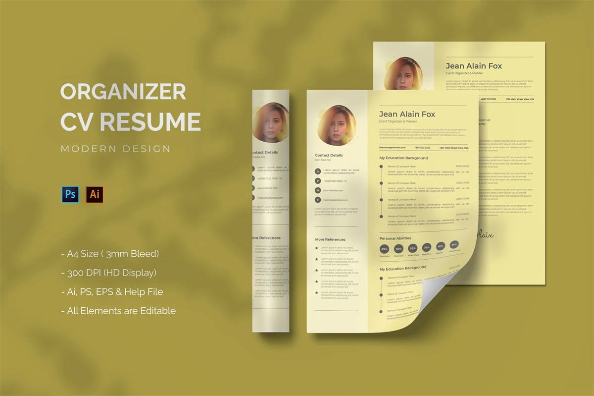 This is Event Organizer - CV Resume Get it now!, CV Resume for All business and personal needs. Great for your business and this design will make your interested, elegant, and easily editable according to your needs (Adobe Illustrator,Adobe Photoshop). You can use this CV Resume for personal purpose, or company purpose, I hope you enjoy for this, Hope you Like it dont forget to rate, Thanks.