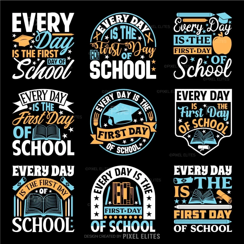 Every Day Is the First Day of School SVG Cut Files Graduation Design Bundle for Cricut EPS PNG for T-Shirts & More