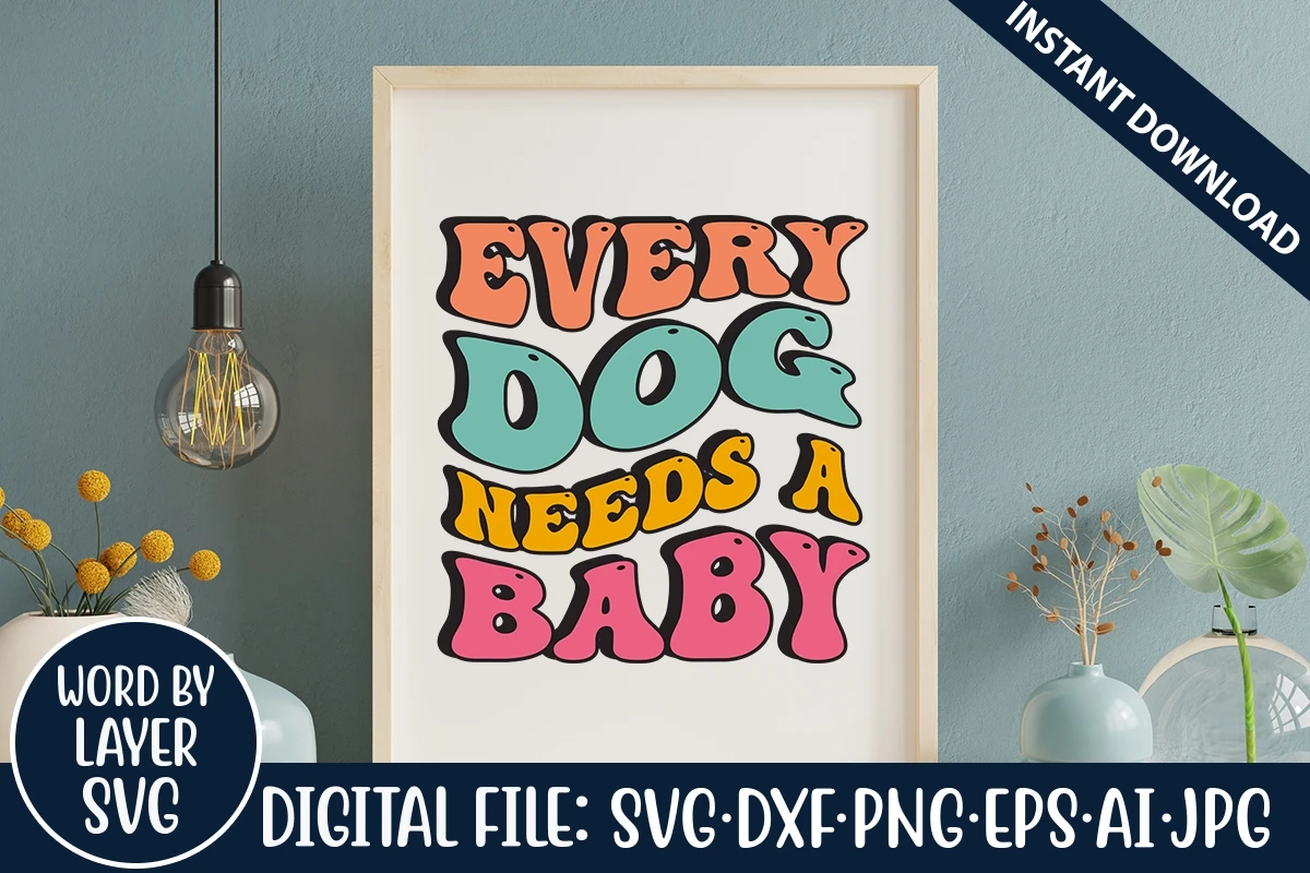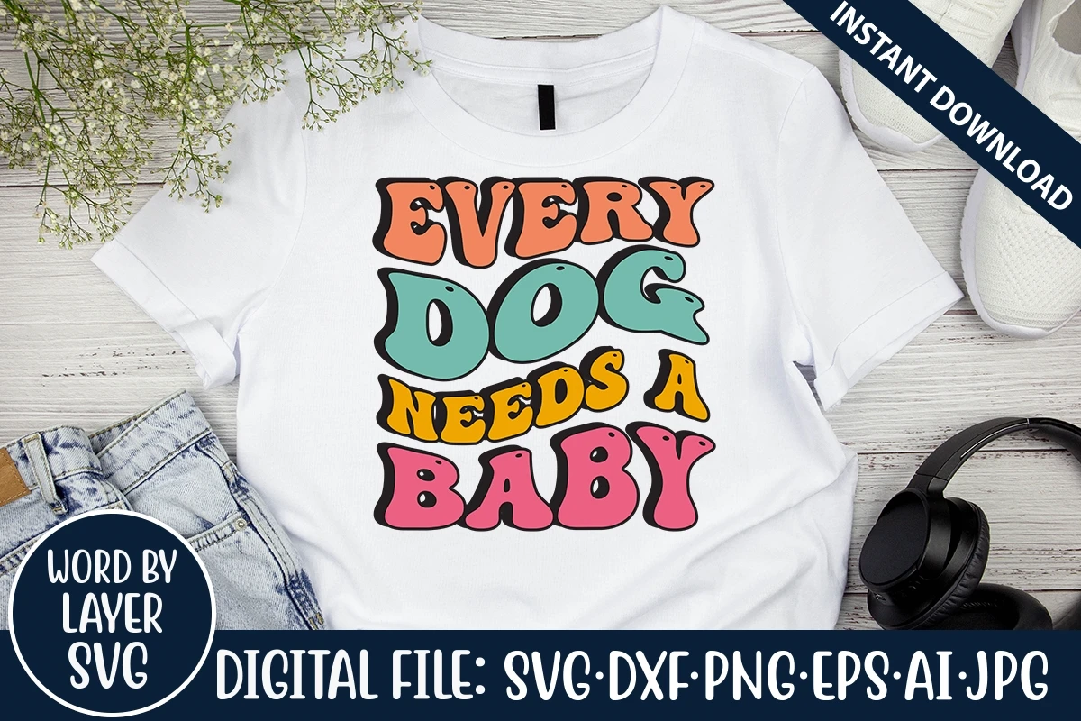 Every Dog Needs A Baby Retro SVG Design, SVG Cut Files