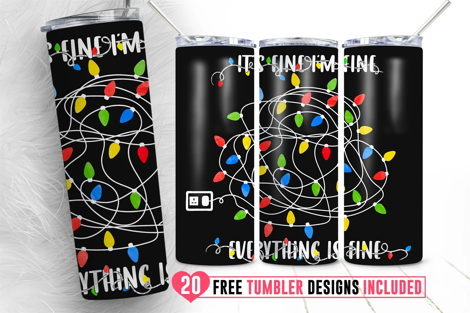 Everything is Fine Skinny Tumbler Christmas Lights Merry