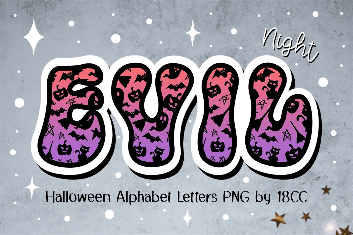 Evil Night Colors PNG Alphabet and Number. Great for crafts project, graphic design, decoration, print and much more!