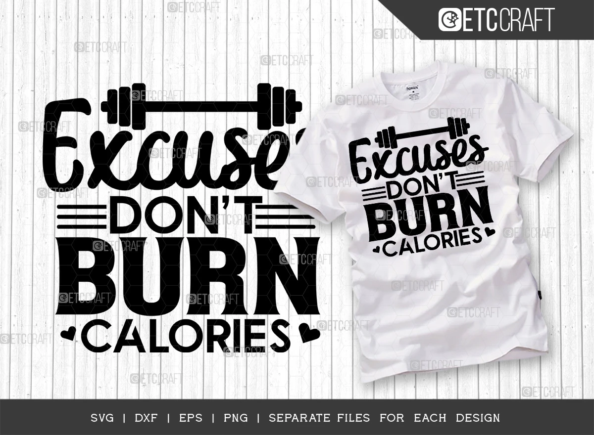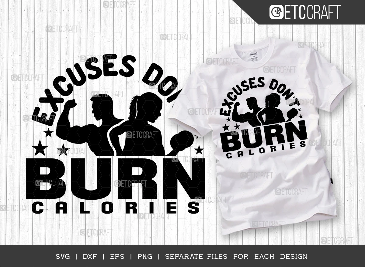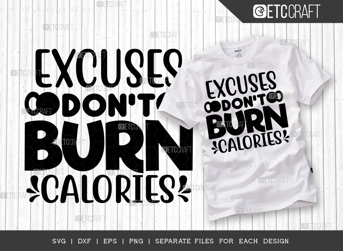 Get the "Excuses Don't Burn Calories SVG Bundle" today and embrace the power of motivation and dedication in your fitness journey. Start burning calories and inspiring others with this remarkable design.