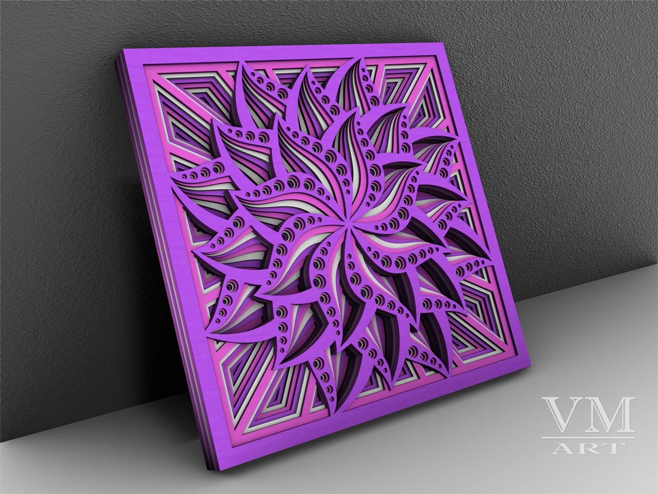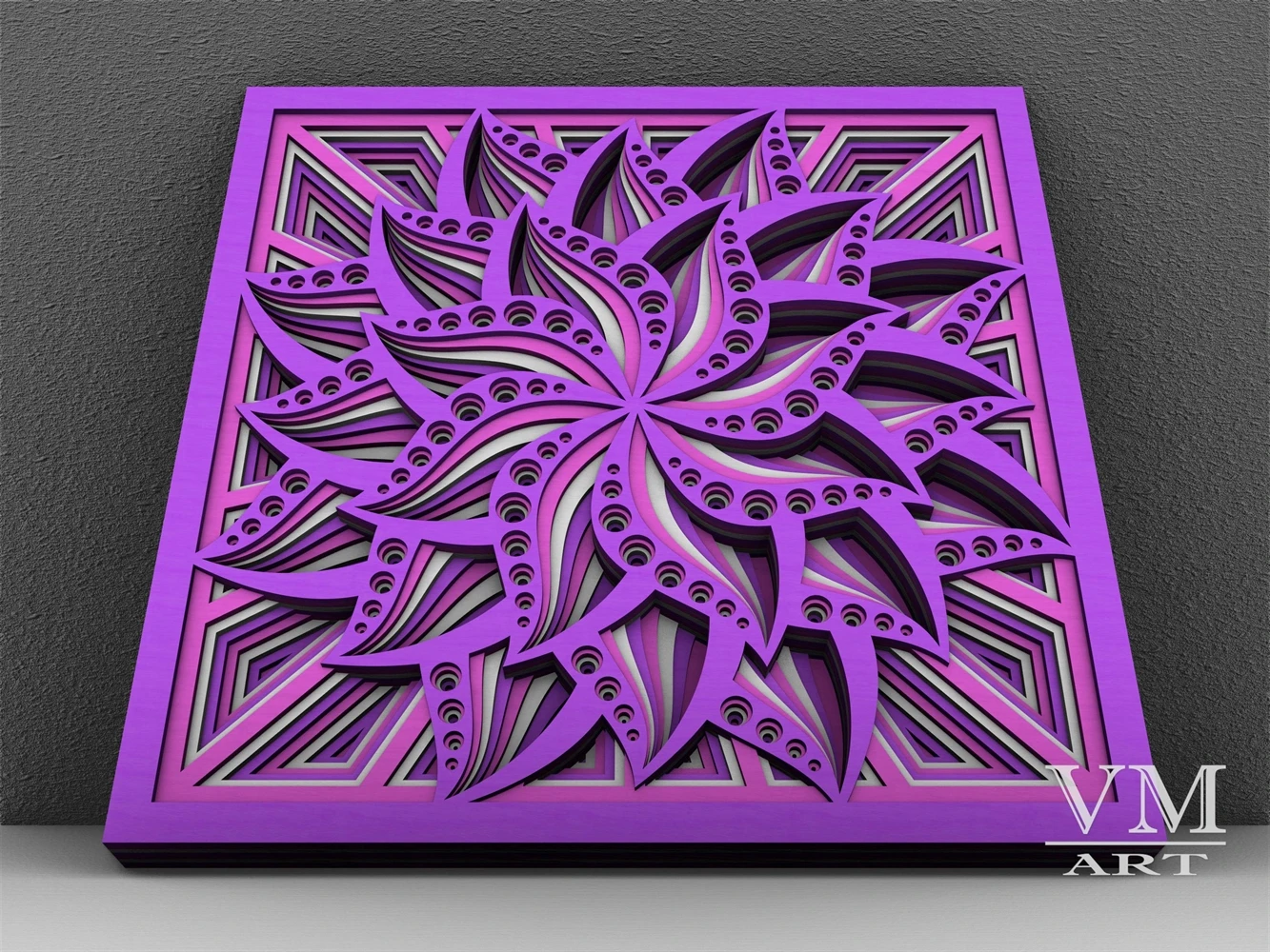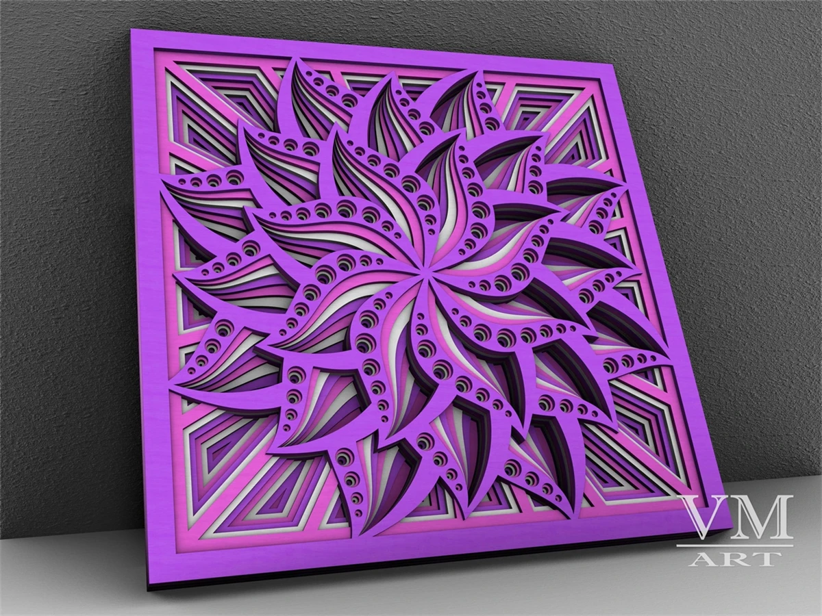 F05 - Layered Flower SVG, 3D Flower Mandala, Laser cut file Mandala DXF file, Layered Mandala SVG for Cricut, 3D Flower