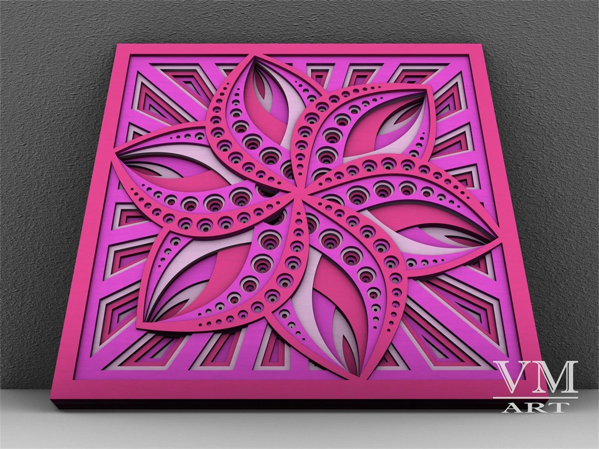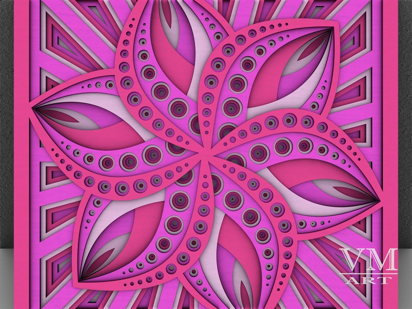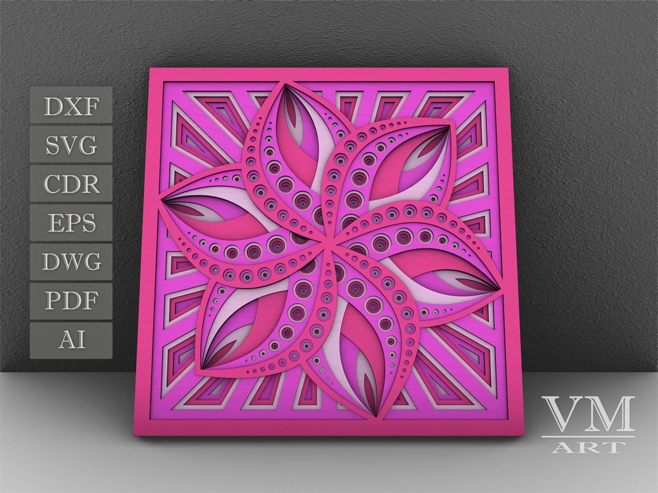 F08 - Layered Flower SVG, 3D Flower Mandala, Laser cut file Mandala DXF file, Layered Mandala SVG for Cricut, 3D Flower