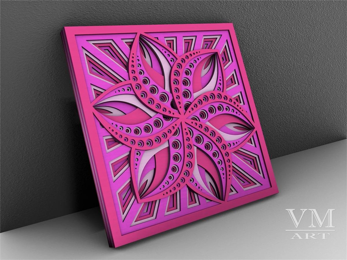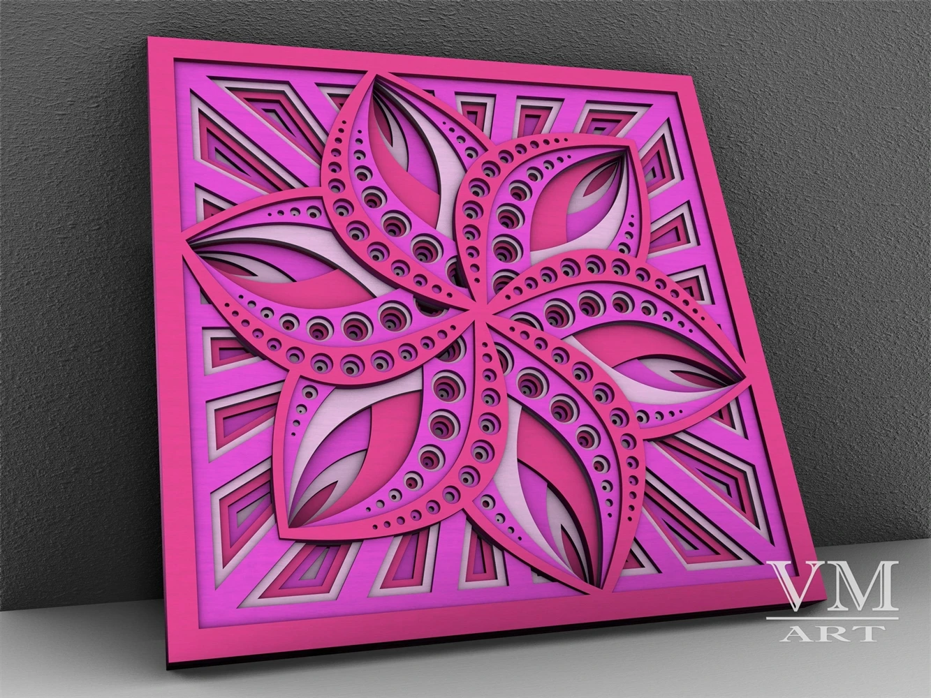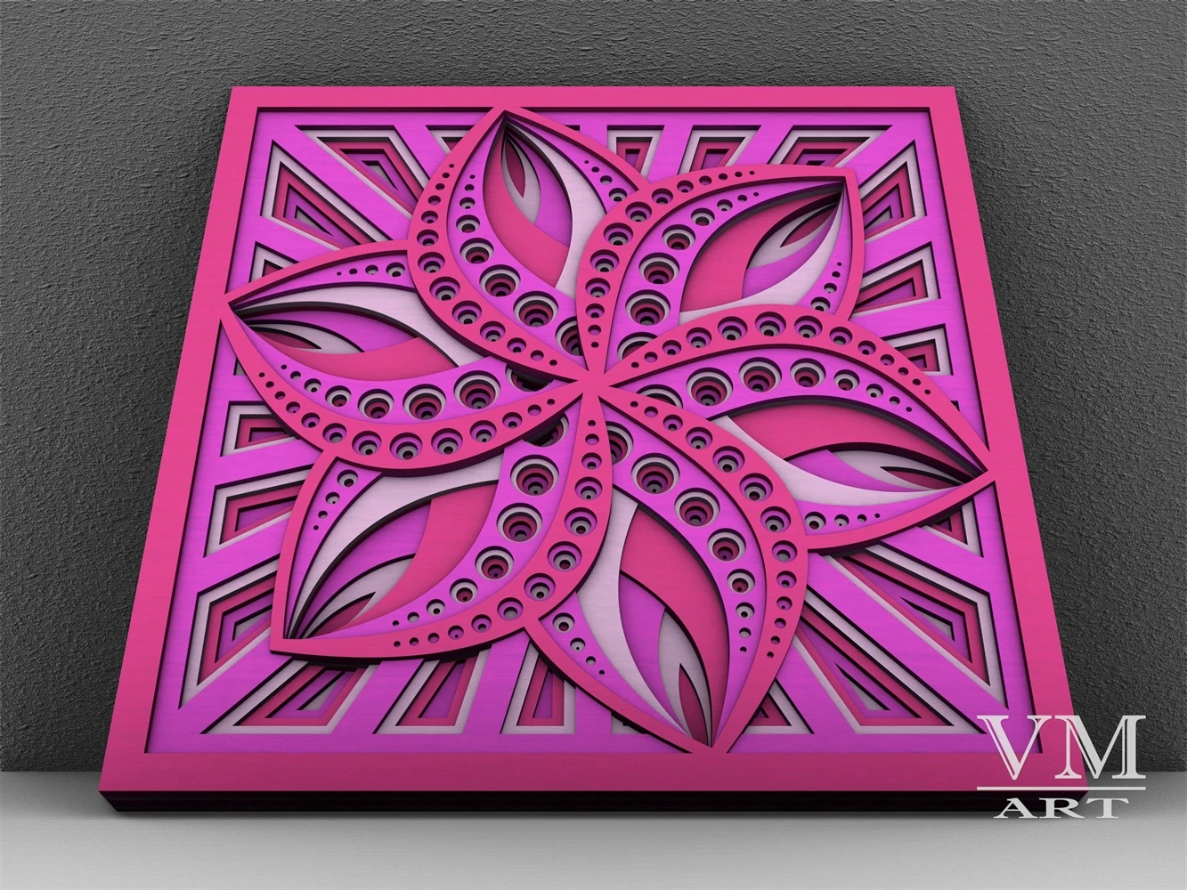 F08 - Layered Flower SVG, 3D Flower Mandala, Laser cut file Mandala DXF file, Layered Mandala SVG for Cricut, 3D Flower