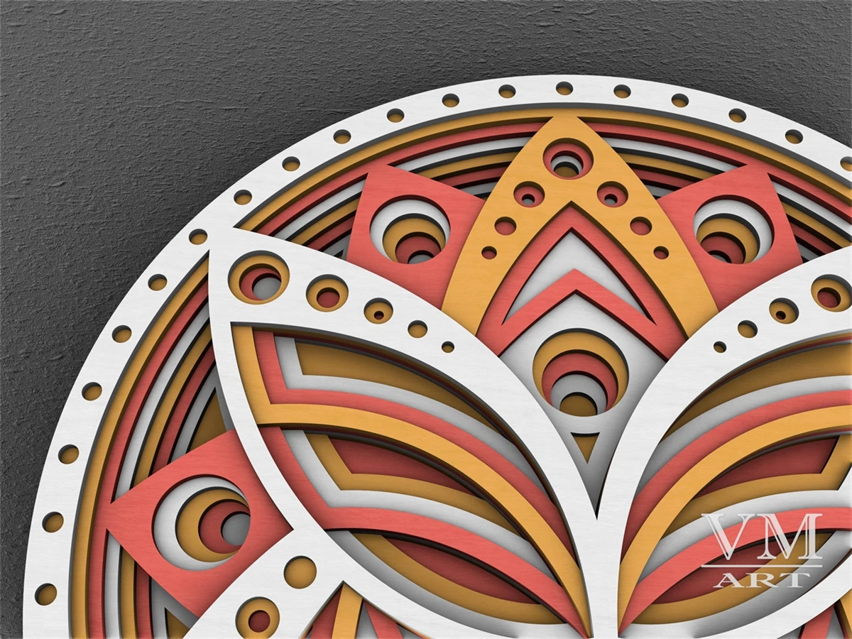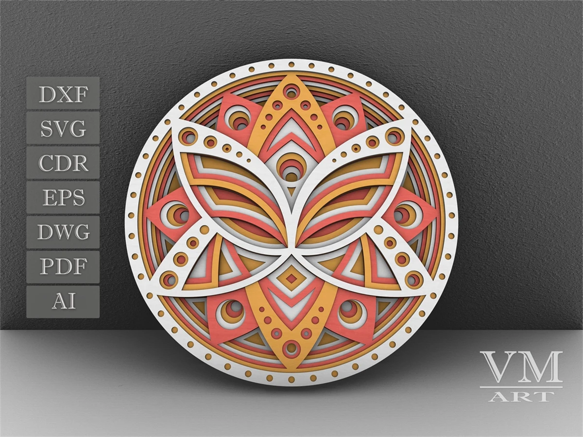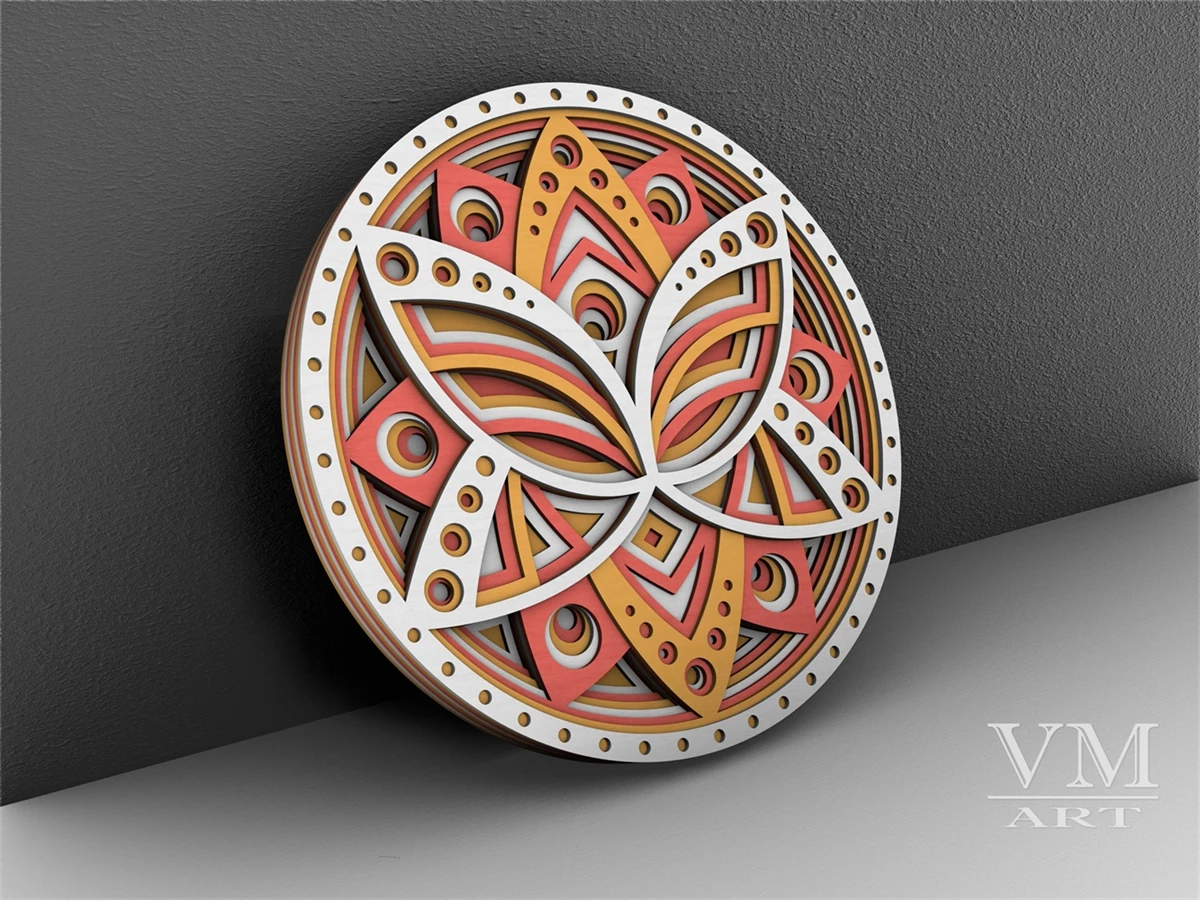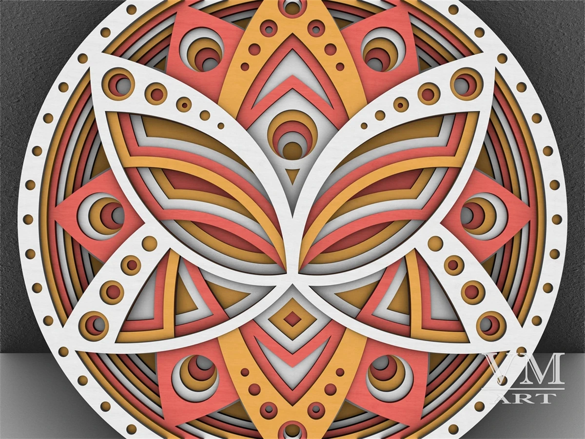 F13 - Layered Lotus SVG, 3D Lotus Mandala, Laser cut file Mandala DXF file, Layered Mandala SVG for Cricut, 3D Lotus